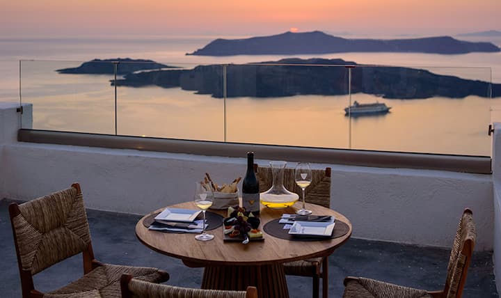 Santorin: Wein & Abendessen bei Sonnenuntergang