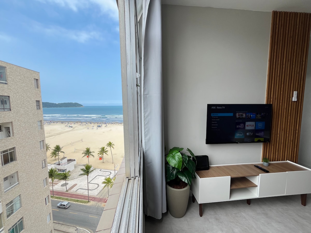 Lindo Apartment in der besten Region von São Vicente mit Meerblick und Fuß im Sand. Wir bieten einen Parkplatz in der Nähe des Grundstücks. In der Nähe von Restaurants, Bars, Drogerien, Supermärkten und den Hauptstränden der Stadt. Die Ape verfügt über Klimaanlage, 350 Mb WLAN, 55-Zoll-TV mit offenen Kanälen und Netflix, komplette Bettwäsche, bequemes Bett und Schlafsofa, voll ausgestattete Küche sowie einen Esstisch mit einer leidenschaftlichen Aussicht. Sagt es dir, ob es nicht eine Freude ist, eine Weile zu verbringen?