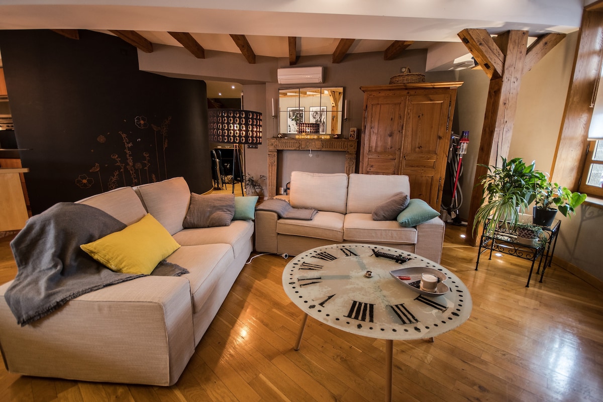 Entspannen Sie sich in dieser ruhigen und eleganten Unterkunft. Die Dekoration ist gepflegt, die Möbel sind hochwertig und die Bettwäsche (Bio-Baumwolle und Baumwollgaze, Leinen...) wird Sie Ihren Aufenthalt in dieser alten Scheune, die vor kurzem komplett renoviert wurde, genießen lassen. Das Moderne und das Rustikale ist subtil für die Schlafzimmer, das schöne Bad oder das 40 Quadratmeter große Wohnzimmer mit sichtbaren Balken, schöne Deckenhöhe und offenem Kamin kombiniert.