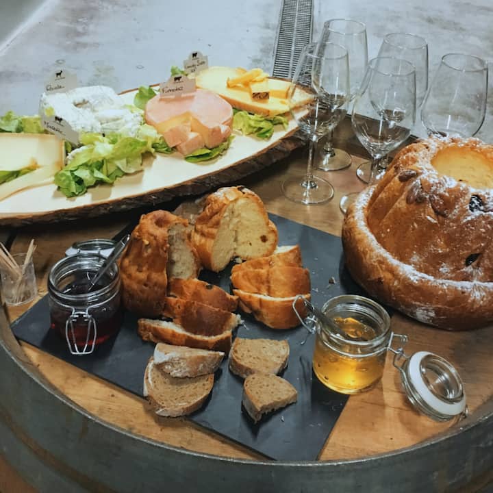 Besichtigung des Kellers, Verkostung und elsässischer Brunch