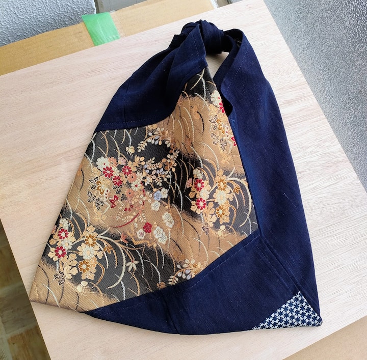 Patchwork mit Vintage-Kimono und alten Stoffen: Herstellung einer modernen japanischen Origami-Tasche mit einer Nähmaschine