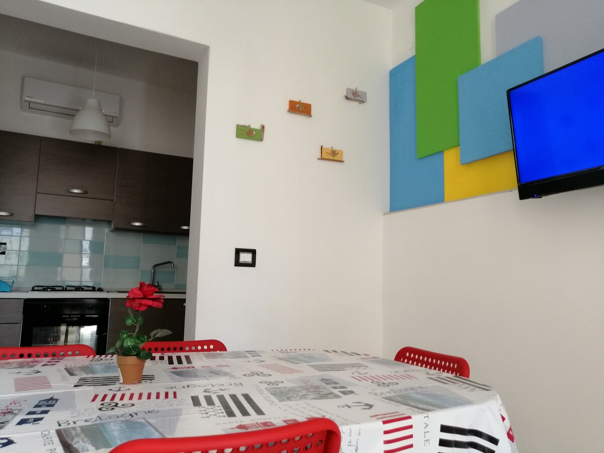 Haus am Meer Giada und eine komfortable familienfreundliche Wohnung mit Außenterrasse, 300 m vom Meer entfernt. Dank seiner strategischen Lage bietet dieser Raum einen einfachen Fußgängerzugang zu allen Sehenswürdigkeiten von Torre Lapillo. DieWohnung ist mit Klimaanlage, Waschmaschine, Bettwäsche und Küche ausgestattet, die mit Geschirr und verschiedenen Accessoires ausgestattet ist.