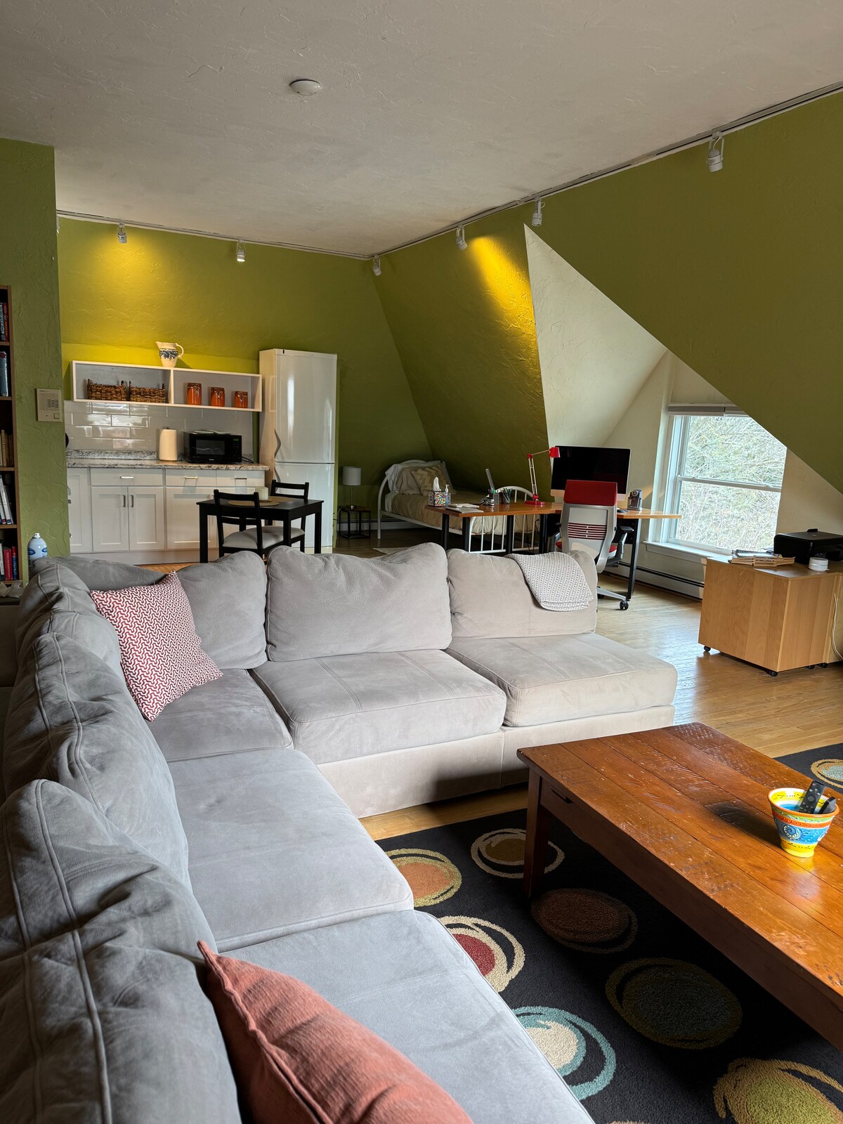 Voll möblierte Suite mit eigenem Eingang; Zugang im Erdgeschoss. Panoramafenster mit Blick auf und Nutzung des großen Hinterhofs. Separate Sitz- und Schlafbereiche (Doppelbett), Schreibtisch/Arbeitsbereich, Badezimmer mit Dusche, Küchenzeile mit kleinem Kühlschrank, Kaffeemaschine und Mikrowelle (kein Herd). Tolles Essen zum Mitnehmen in der Nähe. Keine Haustiere, Rauchen verboten. Auto? Es gibt überdachte Parkplätze abseits der Straße. Kein Auto? Der 71 Bus zum Harvard Square hält an unserer Ecke; kurzer Spaziergang zu anderen Bussen und öffentlichen Verkehrsmitteln.