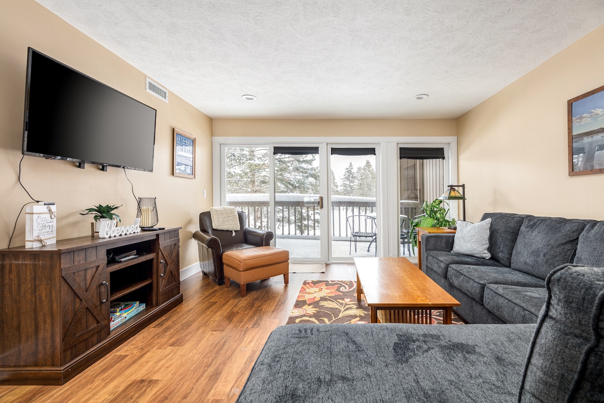 Willkommen in deinem zweiten Zuhause, während du Traverse City erkundest. Diese Eigentumswohnung mit einem Schlafzimmer in der Innenstadt wurde durchdacht mit Blick auf Komfort und Stil gestaltet. Entspanne dich im Familienzimmer mit reichlich Sitzgelegenheiten und einem Smart-TV mit Kabel- und Streaming-Apps. Entspanne dich im Schlafzimmer mit einer brandneuen Memory-Schaumstoffmatratze. Bereite jede Mahlzeit in einer voll ausgestatteten Küche zu. Die Wohnung befindet sich in der Innenstadt von Traverse City, direkt am TART Trail für einen einfachen Zugang zu allem, was die Gegend zu bieten hat! Mit zwei neuen Fahrrädern!