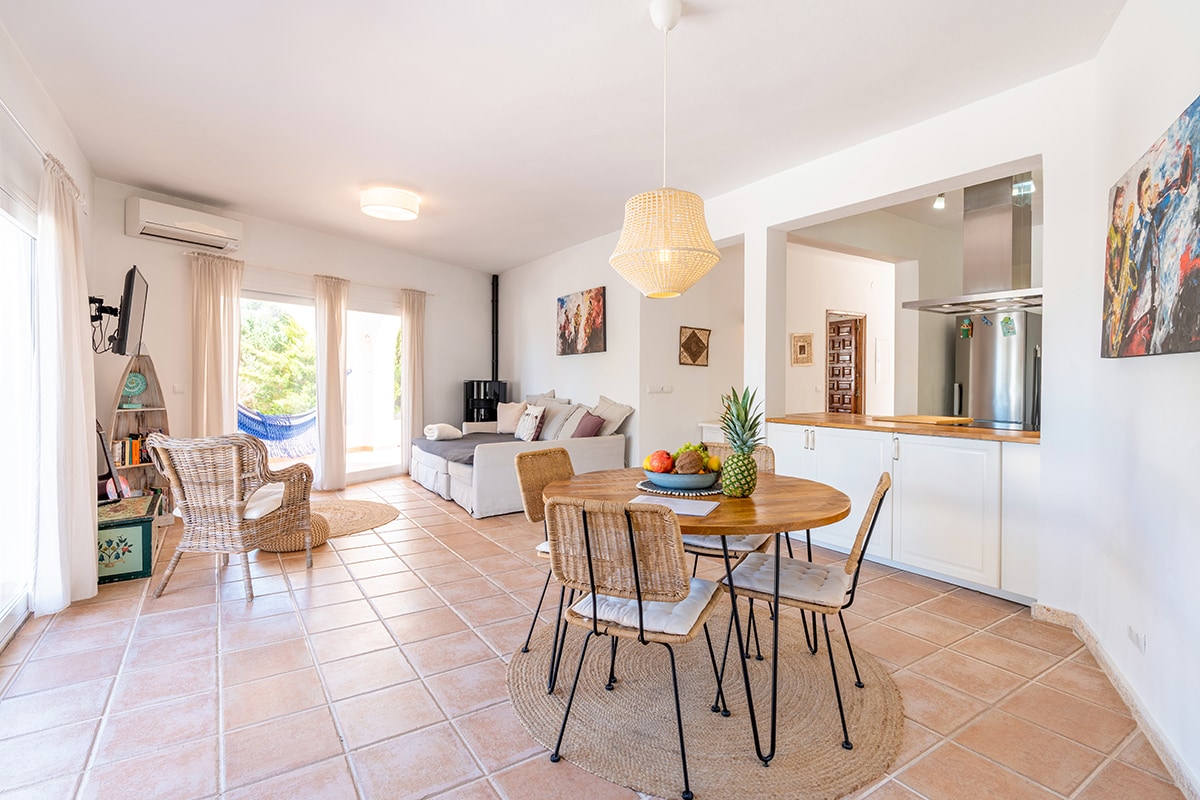 Villa befindet sich 200 Meter vom Zentrum des Dorfes Sant Josep de sa Talaia. In der Nähe von mehreren Restaurants und Geschäften, die leicht zu Fuß erreichbar sind. Das Haus ist auf eine einzige Etage verteilt. Erleichterung der Mobilität und Zugänglichkeit. Ruhige Gegend. Ideal für Familien mit Kindern. Umzäuntes Grundstück von ca. 1000 m2 mit mediterranem Garten in ökologischer Bewirtschaftung. Touristenlizenz ET- 0522E. Preise inklusive Ökosteuer.