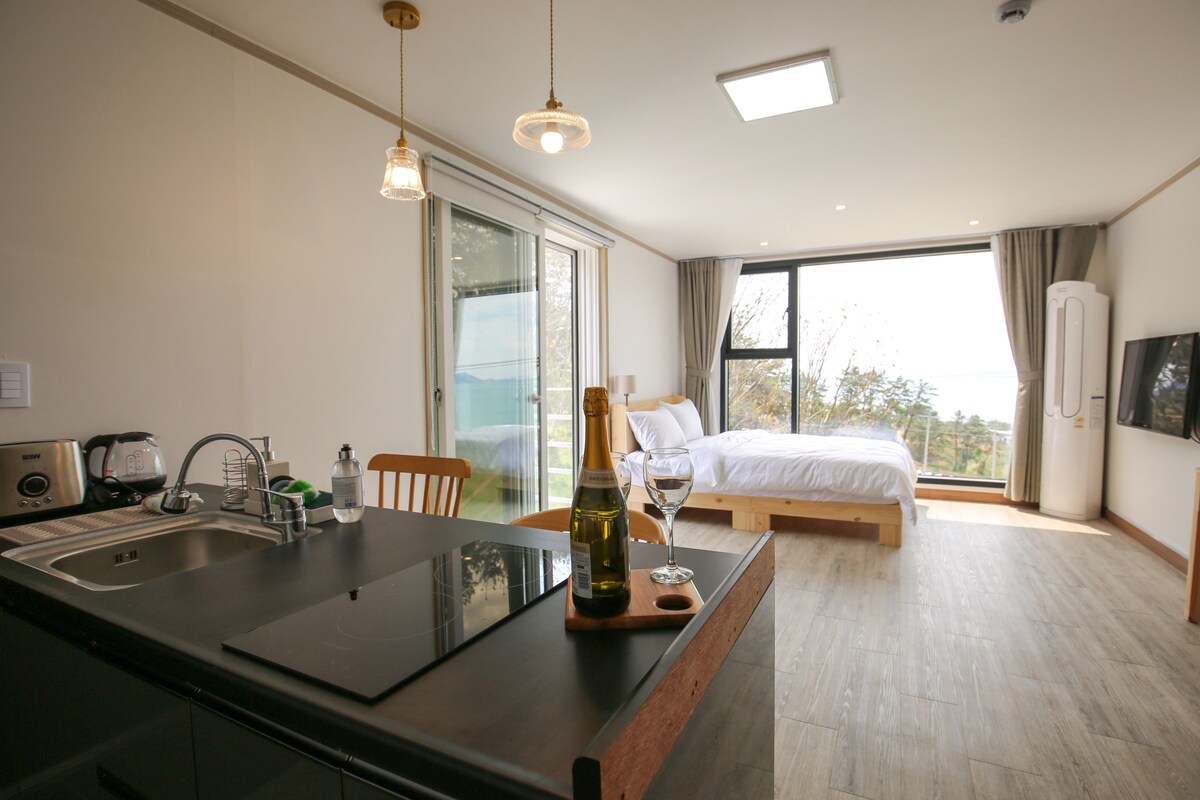 Namhae Ganapension Rose Room - Meerblick, warmer und ordentlicher Ort, in der Nähe des deutschen Dorfes, schöne Nachtsicht