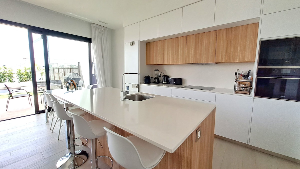 Genieße einen traumhaften Aufenthalt in der Villa Brisamaré. 3 SZ | Privater Pool | Hauptschlafzimmer mit Terrasse | KEINE Gemeinschaftsbereiche | Kostenloses Parken | 75” Smart-TV | Voll ausgestattete Küche mit Essbereich | Neubau | Homeoffice geeignet 15 Min. Dénia | 1 Min. Supermärkte | 25 Min. Naturpark Montgó | 11 Min Golfplatz | 9 Min. Reitzentrum | 4 Min. Autokino | 100 km Flughäfen Alicante oder Valencia Genieße den wohlverdienten Kurzurlaub nur 5 Minuten vom Strand entfernt.