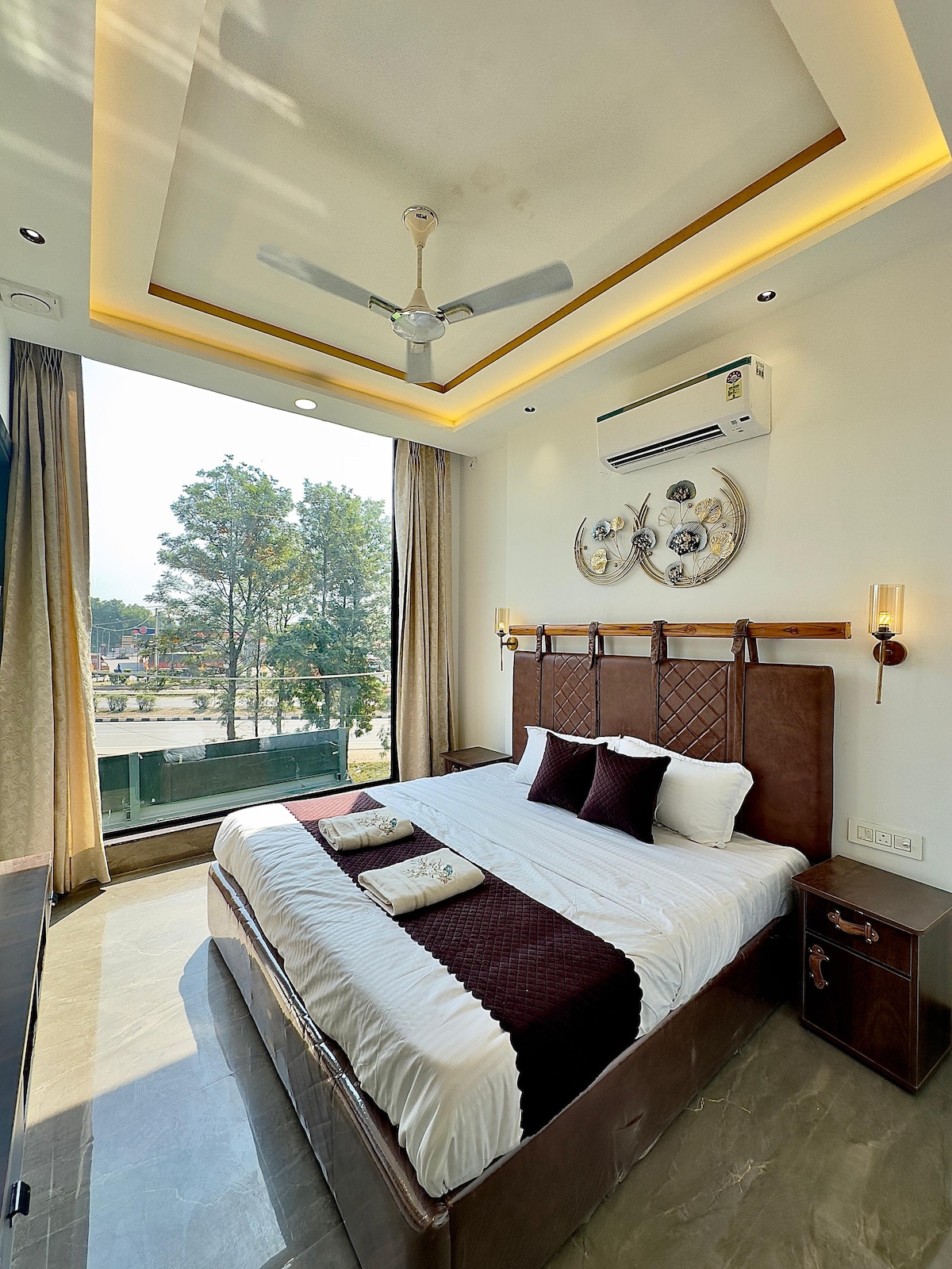 Located in the heart of Mohali. Nearby Locations: •1 min from Fortis Hospital •2 min International Cricket Stadium •5 min ISB Mohali •Only 10 minutes from the Airport Our Property Highlights: •Spacious Rooms – A fully equipped kitchen and a balcony •Presidential Suite – Featuring a separate meeting lounge for business •Fitness Center •Rooftop Restro – Enjoy stunning views of the city •Multi Cuisine resto 24/7 •High Speed Internet with 100 Mbps dedicated LAN in each room