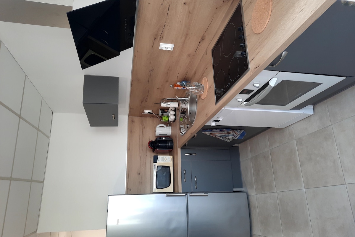 Petit Coin de Bonheur: brandneues klimatisiertes Studio mit Terrasse und privatem Parkplatz, 5 Minuten von der Innenstadt entfernt. Helles, voll ausgestattetes Studio. Warme, nagelneue Unterkunft, die allen Komfort bietet, den du für einen angenehmen Aufenthalt benötigst. Bestehend aus : Eine voll ausgestattete Küche. Ein großes Wohnzimmer mit TV, Internetzugang und WLAN. Ein niedriges Zwischengeschoss mit einem 160 cm breiten Bett. Badezimmer mit 120 cm Dusche und Waschmaschine.