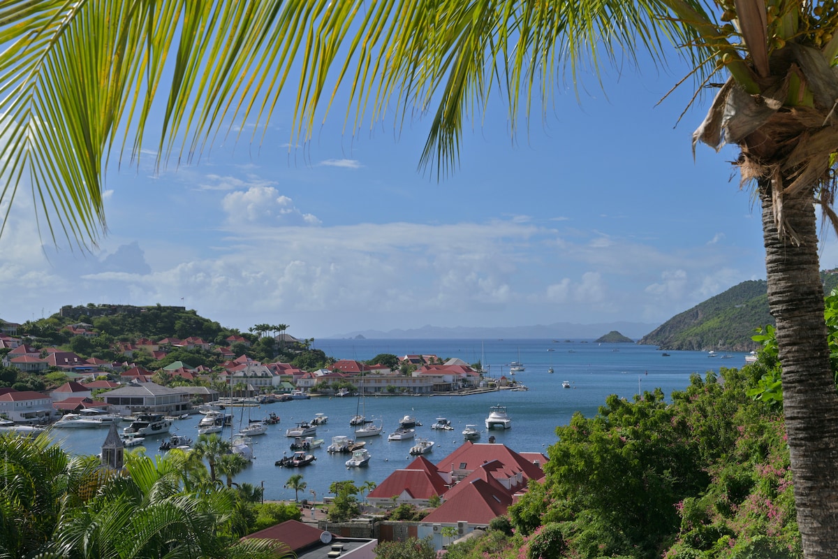 Genieße ein stilvolles Erlebnis in dieser zentral gelegenen Wohnung mit 2 Schlafzimmern, 2 Badezimmern und einer voll ausgestatteten Küche. Eine ruhige Oase vor dem Hafen von Gustavia. Gehe zu Fuß zu allen Geschäften und Restaurants in der Stadt. Genieße einen Apéro mit dem schönsten Sonnenuntergang, bevor du das Nachtleben erkundest oder ein ruhiges Abendessen auf deiner privaten Terrasse mit Blick auf das Meer und die Boote an einem der exklusivsten Postkartenorte von St. Barth genießt.