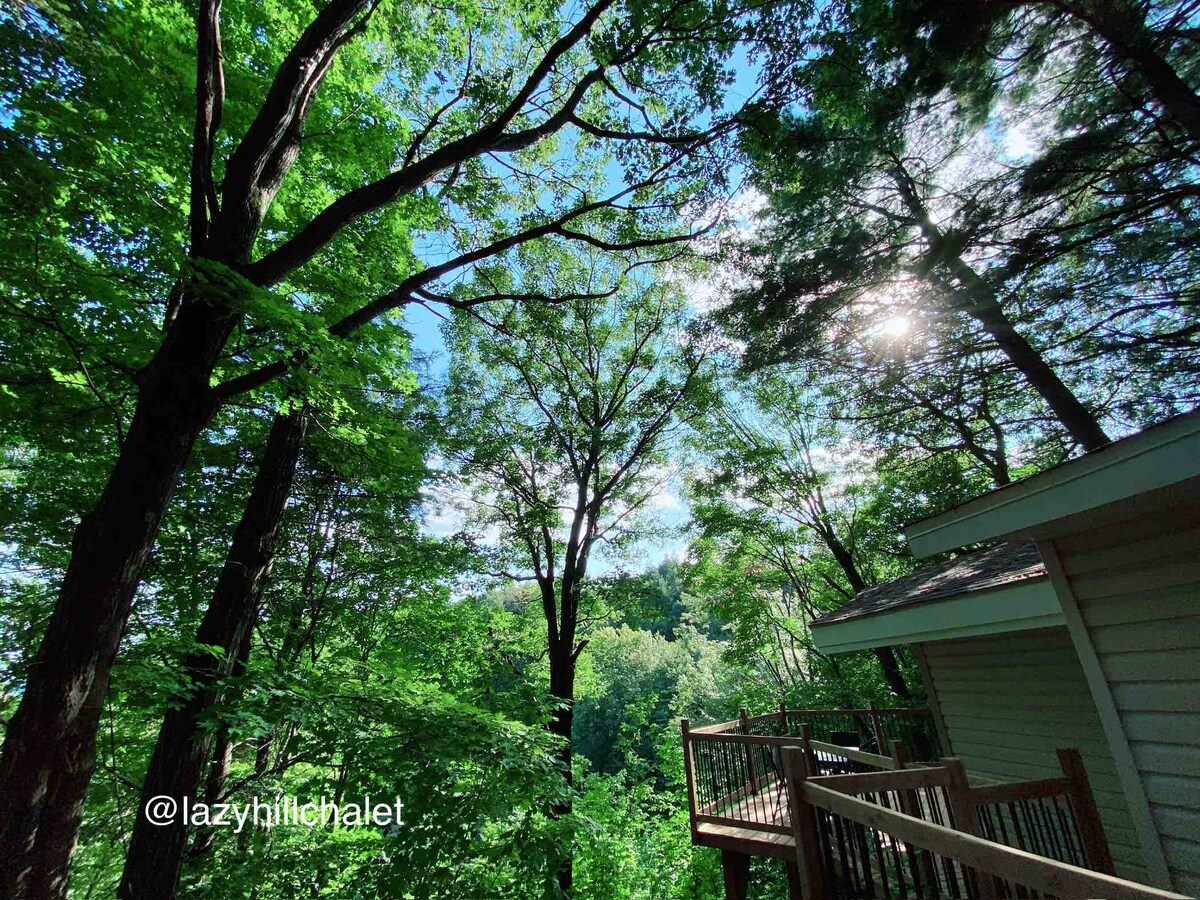 Unser nordisches Waldchalet ist perfekt geeignet, um Zeit zu zweit (oder mit einem Kind) oder für ein Work-Retreat (mit Highspeed-WLAN) zu verbringen. Das Holzinterieur ist warm und gemütlich. Die Fenster in voller Höhe bieten einen atemberaubenden Blick über ein bewaldetes Tal. Die offene Küche und das Wohnzimmer halten dich beim Kochen im Gespräch. Wenn du lieber draußen kochen möchtest, gibt es eine Feuerschale mit Grill und Esstisch im Freien. Nur 70 Fahrminuten von Montreal entfernt. Der See ist 25 Gehminuten entfernt, wenn du in der Nähe parkst.