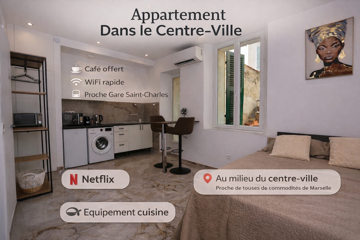 Willkommen in diesem charmanten Studio, das nur 50 Meter vom Bahnhof Saint-Charles entfernt im Herzen von Marseille liegt. Komplett renoviert und mit nagelneuen Möbeln ausgestattet, sorgfältig dekoriert Diese Unterkunft ist perfekt für einen komfortablen Aufenthalt, sei es für eine Geschäftsreise oder einen touristischen Ausflug. Genießen Sie einen sauberen und modernen Raum, der alle Ihre Bedürfnisse erfüllt. Nur einen Katzensprung vom Stadtzentrum entfernt, haben Sie schnellen Zugang zu den wichtigsten Sehenswürdigkeiten von Marseille.
