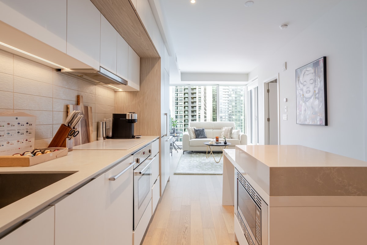 Genieße deinen Aufenthalt im Herzen der Stadt! Brandneue TDC 2 Innenstadt-Luxus mit direktem Zugang zum Bell Center! Genieße den Komfort in unserer komplett möblierten und ausgestatteten Einzimmerwohnung mit eigenem Balkon! Dein Aufenthalt beinhaltet Zugang zu einer Sauna, einem Pool, einem Fitnessstudio, einer Skylounge, einem Spielzimmer, einer Lounge und einer Terrasse mit mehreren Grills. Kostenlose Tiefgarage, mit der U-Bahn nur wenige Minuten entfernt. Ohne nach draußen zu gehen, kannst du die Stadt erkunden. Entspanne dich außerdem bei kostenlosem Netflix für den perfekten Aufenthalt.