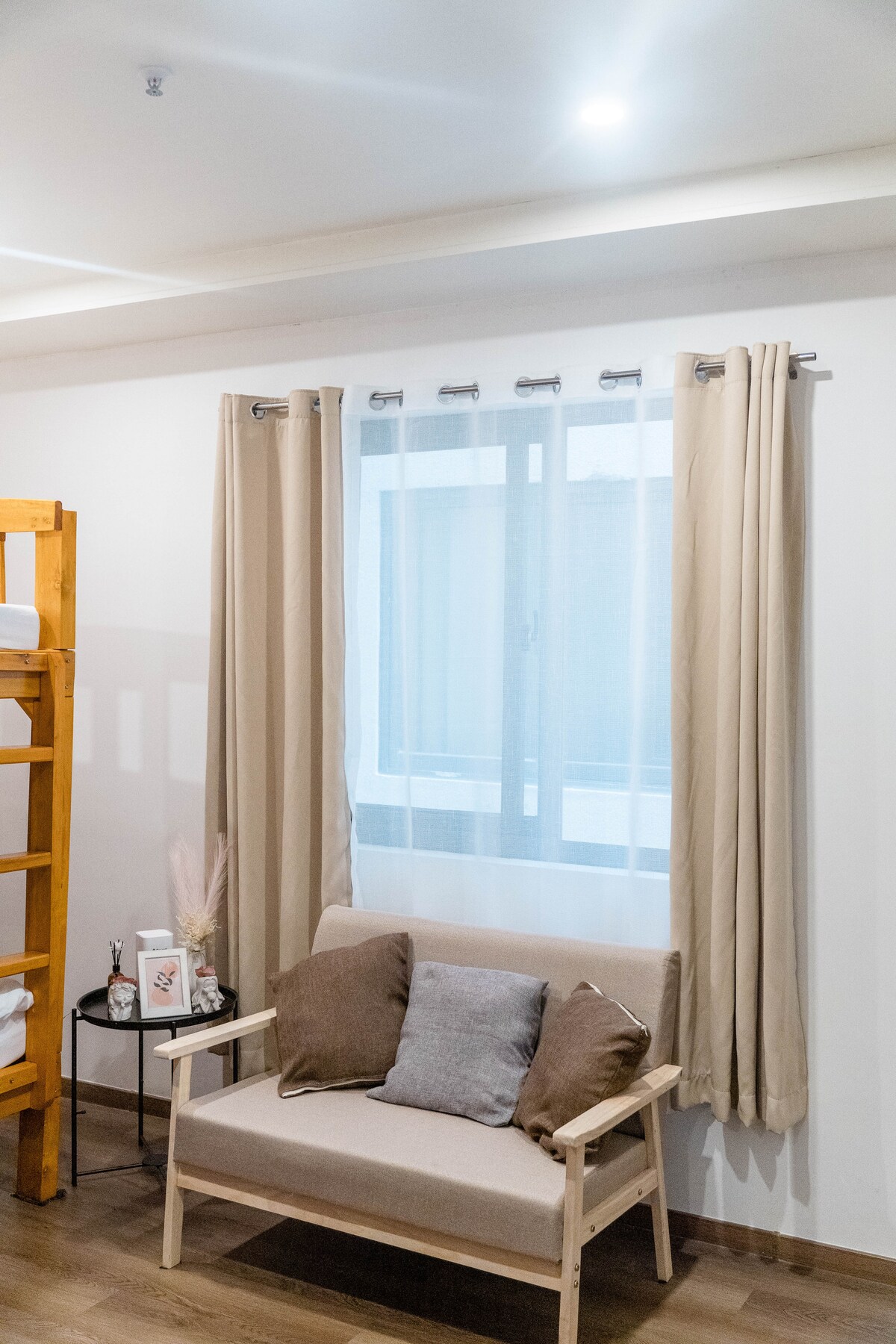 Unit 02 @ North Cabin - klein, bequem gemütlich, ruhig. Ideal für Gäste, die es vorziehen, drinnen zu bleiben und sich zu entspannen, und auch gut für Gäste, die die Stadt aufgrund ihrer großartigen Lage erleben möchten. Die Unterkunft ist über eine Reihe alternativer Routen in verschiedene Teile der Stadt erreichbar, was es bequem macht, herumzulaufen und zu erkunden. Die Unterkunft liegt ca. 2 km vom zentralen Viertel entfernt, in 15 Minuten erreichbar. Wie die Leute in Baguio immer sagen, ist überall in Baguio nur 15 Minuten entfernt. *Treppen-Zugang*
