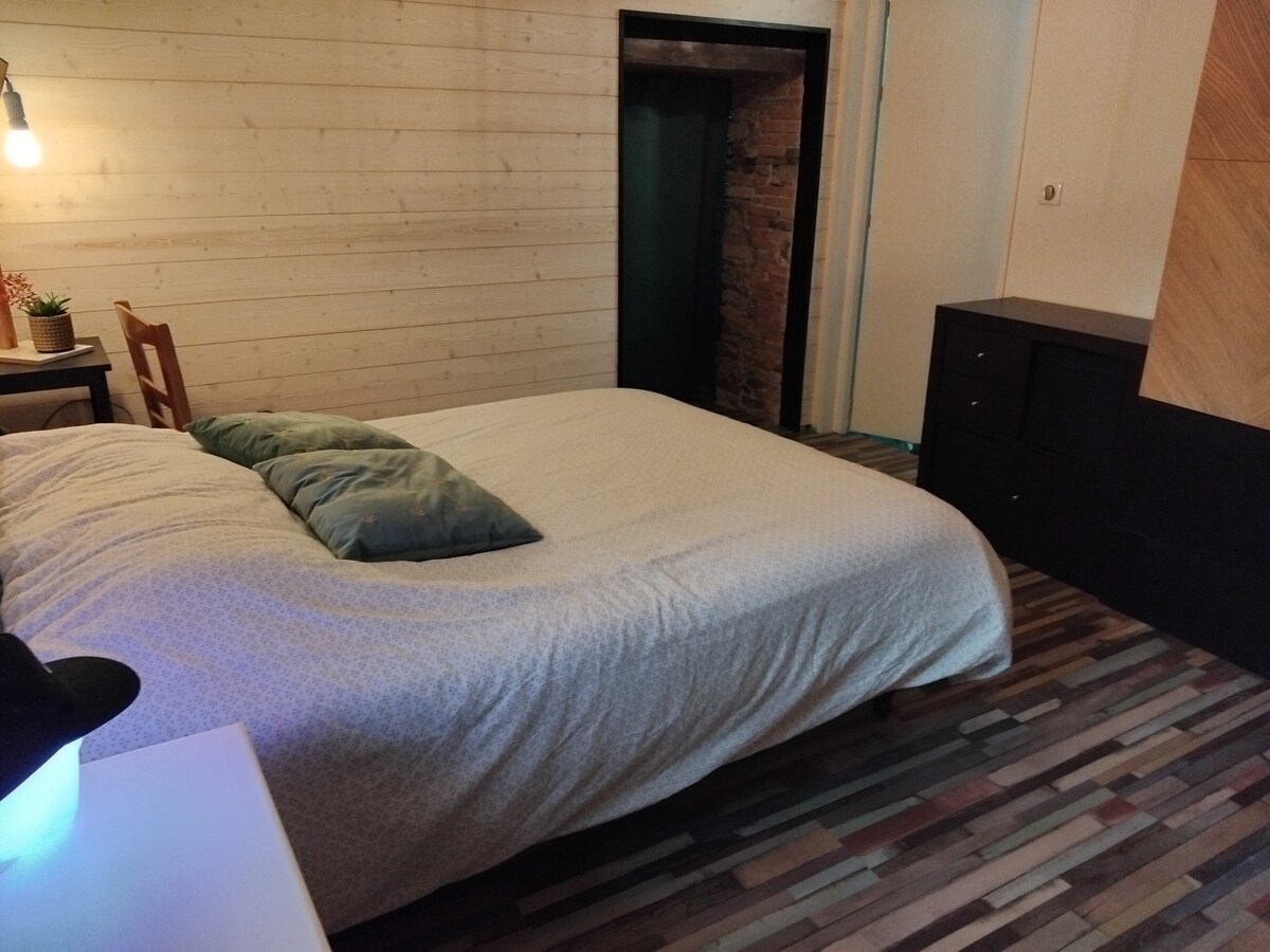 Entspannen Sie sich in dieser ruhigen und eleganten Unterkunft. Im Süden von Nantes gelegen, Bushaltestelle nach Nantes 300 m, in der Nähe von Clisson, ca. 1 Stunde vom Meer entfernt. Coteaux und Maine zu Fuß erreichbar. Komplett renoviert, angrenzend an unser Haus. Wohnzimmer von 15 m2 mit Schlafsofa für 1 Person, WLAN, Küchenzeile mit Induktionskochfeld, Kühlschrank, Mikrowelle, Kaffeemaschine und Wasserkocher. Zimmer von 13 m2, Kingsize-Bett. Eingezäunter Garten. Gartenmöbel. Parkplatz vor dem Haus.