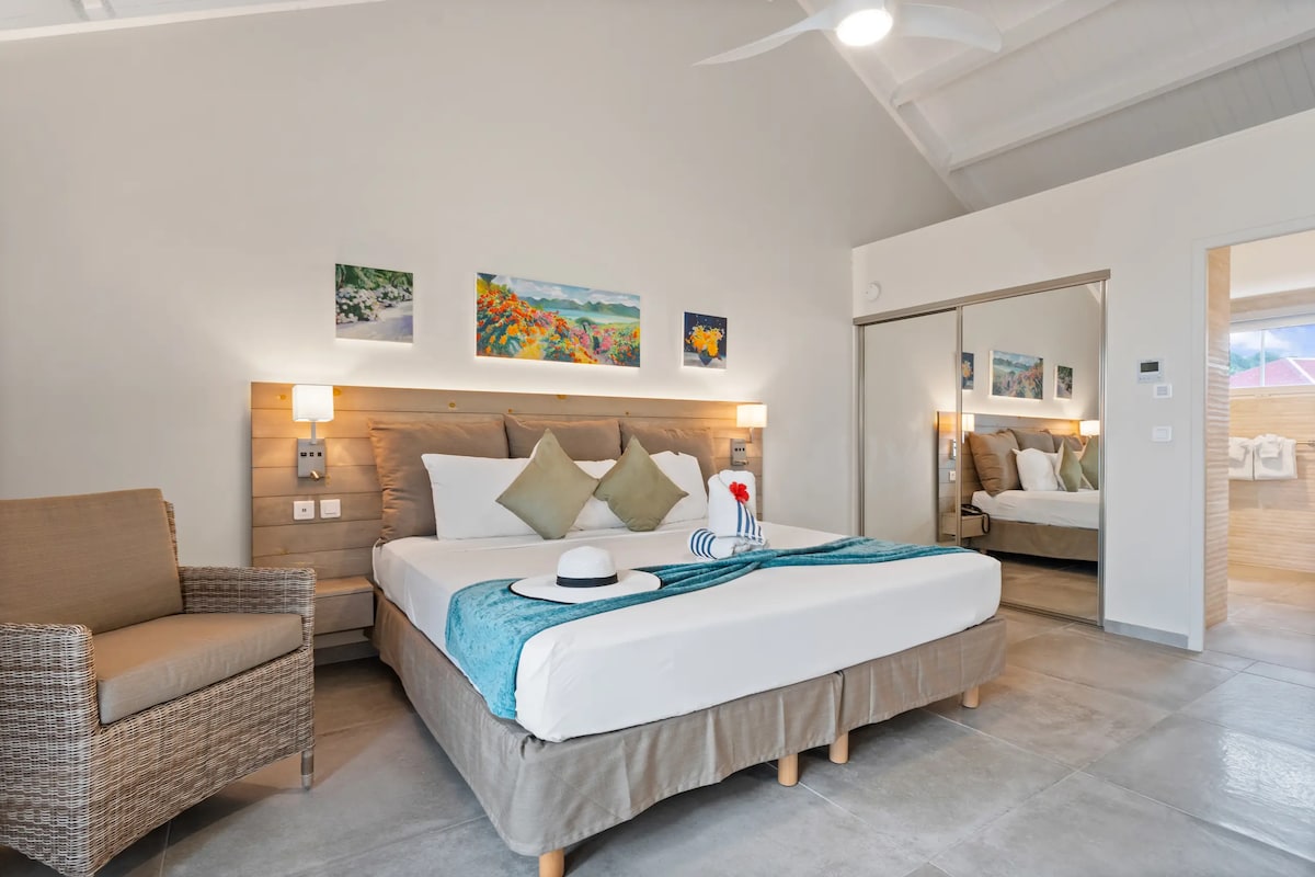 Entfliehe in eine ruhige karibische Suite mit Blick auf den Ozean und Zugang zu zwei Privatstränden. Nur wenige Schritte von den Restaurants und Geschäften von Grand Case entfernt kannst du mit Creole Rock Watersports schnorcheln, tauchen und Kreuzfahrten unternehmen. Entspanne dich am Strand von Anse Marcel oder entdecke die lokale Kultur. Perfekt für Paare und Wellness-Suchende, mit einfachem Zugang zum Princess Juliana Airport.