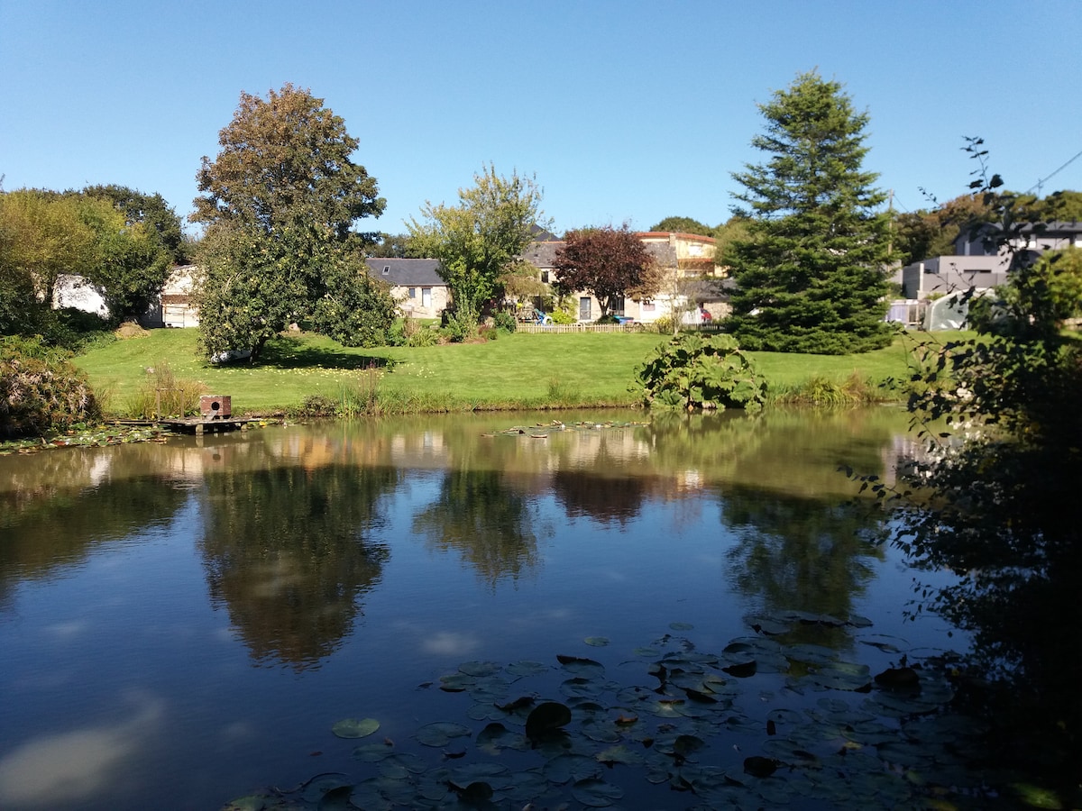La Grange du Moulin liegt in einem ruhigen Tal an einem wunderschönen Teich und bietet einen atemberaubenden Blick auf das Manoir de Lossulien. Genieße die Terrasse mit ihrem beheizten Spa, während du die ruhige Umgebung und die Aussicht genießt. Nur wenige Minuten von Brest und all seinen Annehmlichkeiten entfernt, ist das Ferienhaus ein idealer Ausgangspunkt, um die Region zu erkunden: Océanopolis, die schönen Strände von Finistère, die Inseln Ouessant und Batz sowie viele kulturelle und touristische Attraktionen.