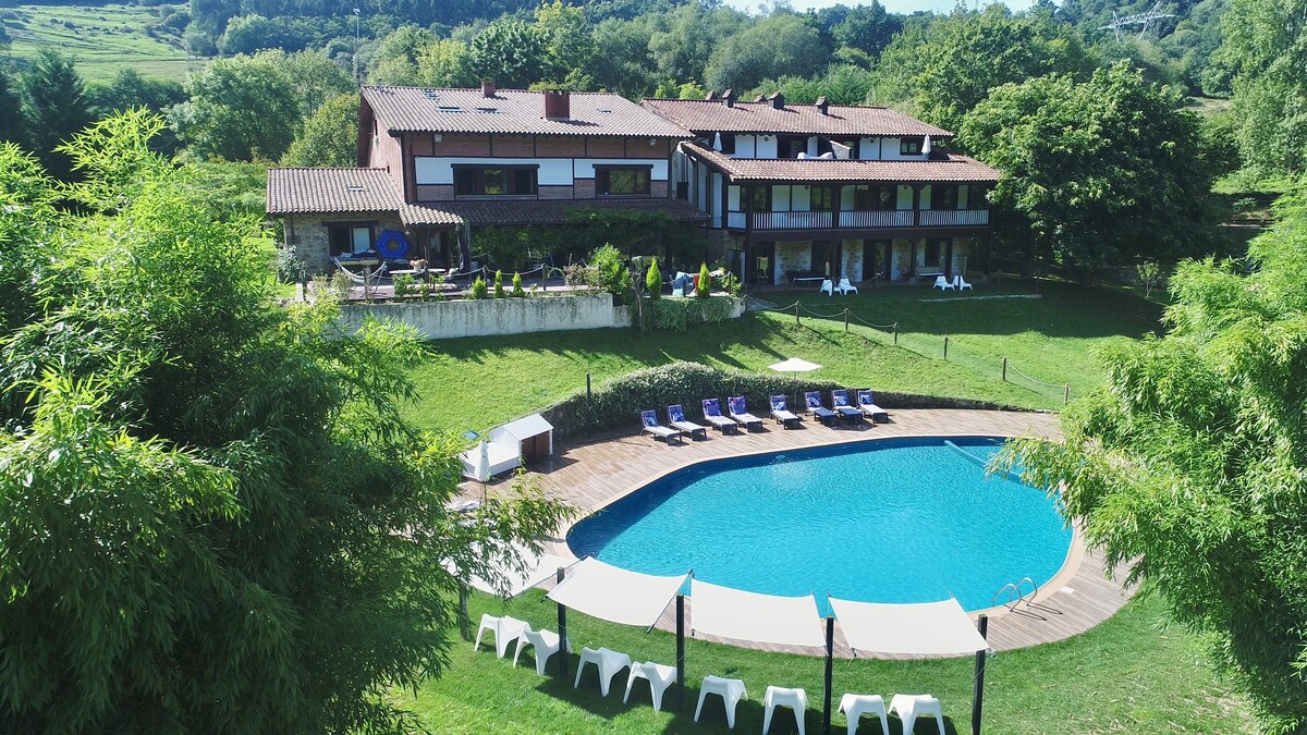 Rustikales Haus im San Felix Ecological Estate, ideal für Familien,und in einer privilegierten Umgebung gelegen. Für bis zu 18 Personen. Es besteht aus: - Erdgeschoss: Küche/Esszimmer, Badezimmer, hab y Balkon - 1. Stock: 5 hab Doppelzimmer, 1 mit 3 Etagenbetten, Badezimmer und Balkon. Nur 2 Minuten von der Geburt des Flusses Gándara und seinem Aussichtspunkt, 5 Minuten vom Parque Natural de los Collados del Asón und 40 Minuten vom Strand Laredo entfernt. Ideale Umgebung für Bergrouten, Kanufahren, Höhlenforschung usw.