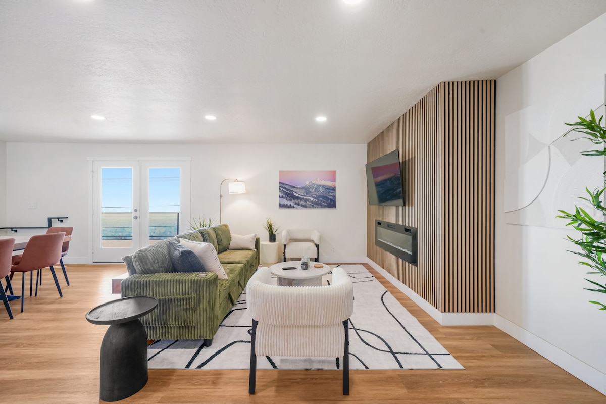Willkommen in deinem ruhigen Refugium am Fuße des Steep Mountain! Ein modernes Haus mit intelligentem Zugang, Glasfaser-Internet und Arbeitsstudio. Die gut ausgestattete Küche verfügt über Granitarbeitsplatten und hochwertige Geräte. Entspanne dich im Wohnzimmer mit einem OLED-TV und einem Holzkamin oder genieße die große Terrasse und den Grill. Alle Schlafzimmer bieten saubere, weiche Bettwäsche und eine atemberaubende Aussicht. Weltklasse-Skigebiete sind nur eine kurze Autofahrt entfernt und der Point of the Mountain Flight Park ist zu Fuß erreichbar. Ein sauberer, moderner Raum erwartet dich!