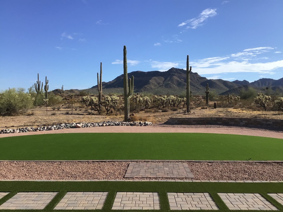 🏊 Ganzjährige Entspannung im beheizten Salzwasserpool & Spa (sanft zu Haut/Augen) 🔥 Gemütliche Feuerfunktionen 🍳 Voll ausgestattete Küche + Propan-Grill im Freien 🎱 Spielzimmer mit Billardtisch, Tischfußball, Darts und Großbildfernseher 🌞 Essbereich im Freien und Bar, um das Wetter in Arizona zu genießen 📺 Outdoor-TV für Spiele/Filme, während du im Spa badest 🚗 Einfache Anbindung an 2 große Autobahnen 🎨 Kunstvoll und einzigartig eingerichtet Resort-ähnlicher Urlaub in Phoenix (Glendale Mailing) – perfekt für Familie, Golfreisen & Urlaub