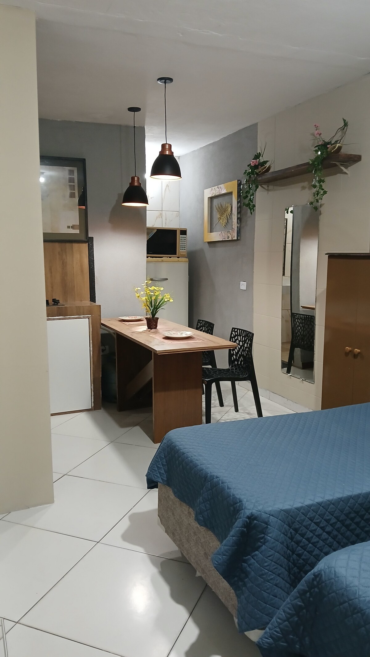 Kitnet/Loft 01 - Superior 2. Stock, im Viertel Jardim Regina in Indaiatuba/SP In der Nähe des Rathauses, 2 Blocks vom Ökopark entfernt, mit Apotheke, Markt, Bäckerei und einem Food Truck in 200 Metern Entfernung. Die Unterkunft besteht aus: 2 Einzelbetten; 1 Herd mit Backofen; 1 Mikrowelle; Küchenutensilien (Grundausstattung); 1 Kleiderschrank; 1 Deckenventilator; TV und WLAN; Badezimmer (komplett und individuell) Waschmaschine; 1 Balkon; Wir haben Bettwäsche (Kissen, Decke, Laken) und Handtücher.