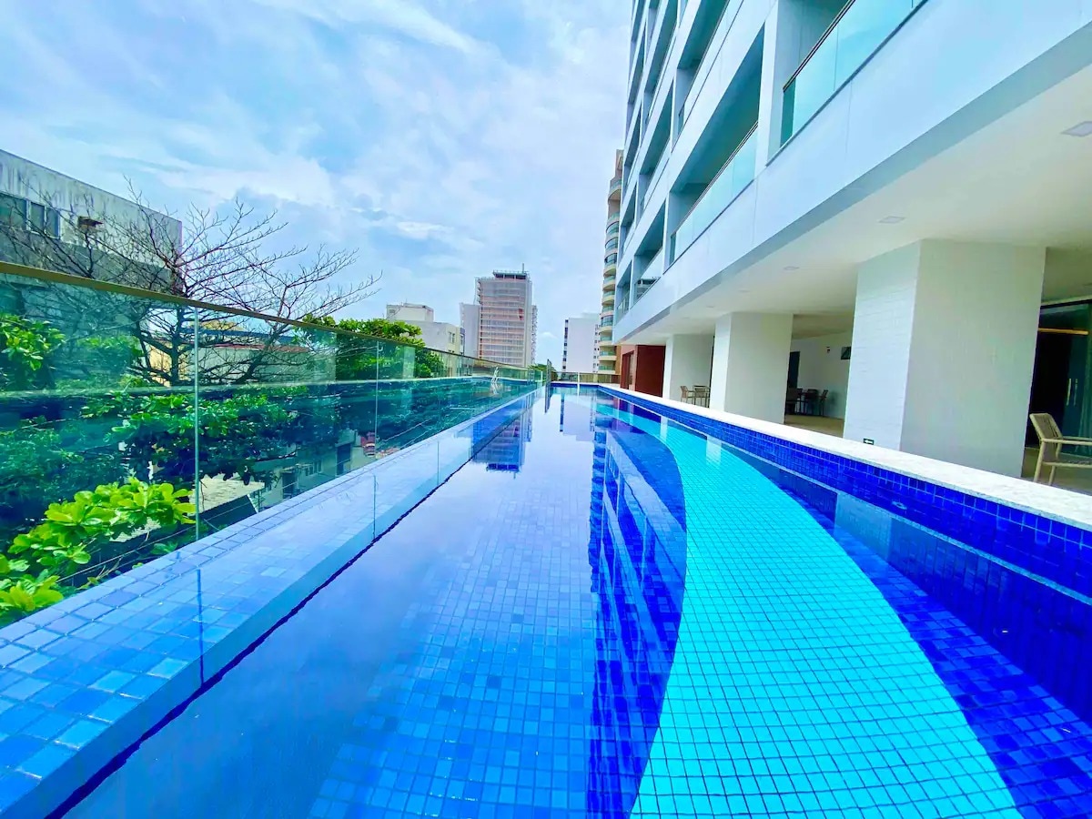 Wohnung in Barra (touristisches Viertel) von Salvador, Panoramablick auf das Meer, parallel zum Karnevalszug. 2 Minuten zu Fuß zum Leuchtturm von Barra. Das Schlafzimmer und das Wohnzimmer bieten Platz für bis zu 04 Personen (Schlafzimmer mit Queensize-Bett und Wohnzimmer mit Schlafsofa). Klimaanlage und Smart-TV in allen Zimmern. Voll ausgestattete Küche mit Herd, Backofen, Mikrowelle, Kühlschrank, Wasserfilter, Nespresso-Kaffeemaschine und allen Utensilien Automatisiert durch Alexa 1 Parkplatz, Dachterrasse mit Pool und Fitnessraum Waschküche im Erdgeschoss RAUCHEN VERBOTEN
