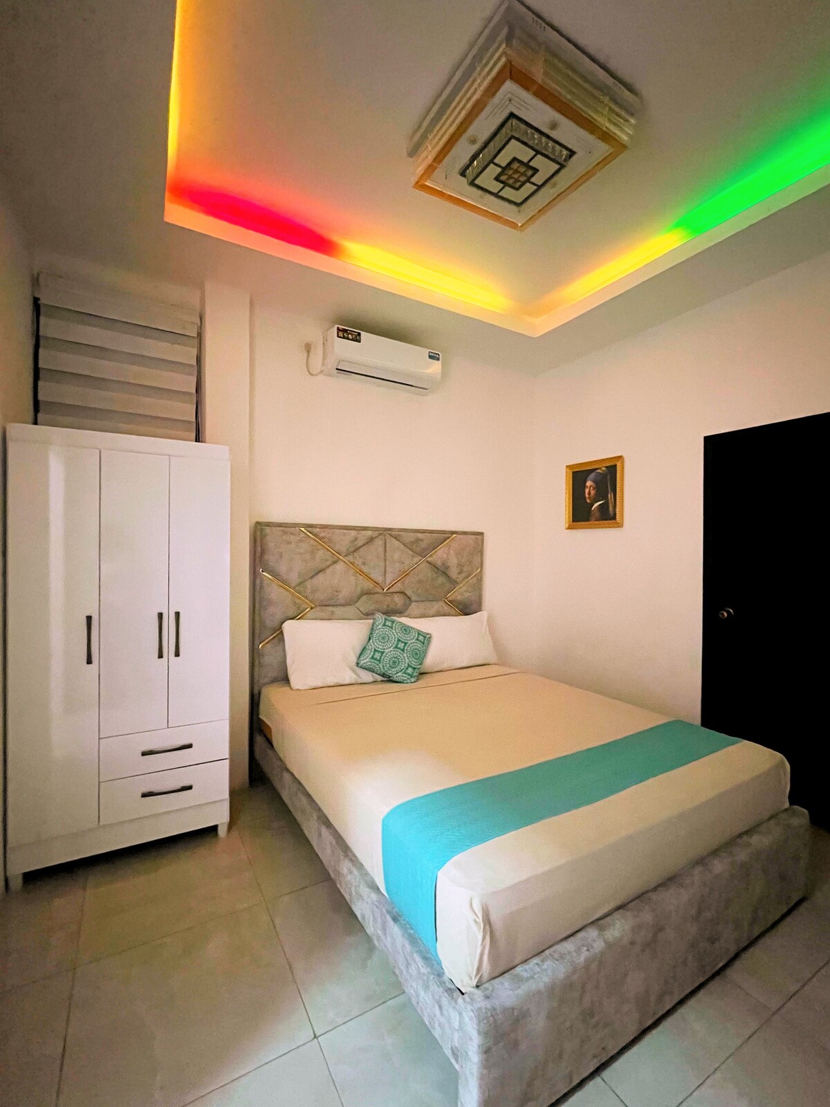 Diese Suite befindet sich in einer sicheren Wohnanlage und bietet ein einzigartiges Erlebnis mit moderner Einrichtung, zu der eine Rosenschaukel und ein dekorativer Kamin gehören. Mit voll ausgestatteter Küche, Arbeitsbereich und WLAN ist sie perfekt für Touristen, Digital Nomads, Paare und Geschäftsreisende. An einer Hauptstraße gelegen, vor einem Einkaufszentrum mit Geschäften und Restaurants, nur wenige Minuten vom Flughafen, dem Busbahnhof und dem Touristenzentrum entfernt. Genießen Sie einen 24-Stunden-Empfang und Wäscheservice.