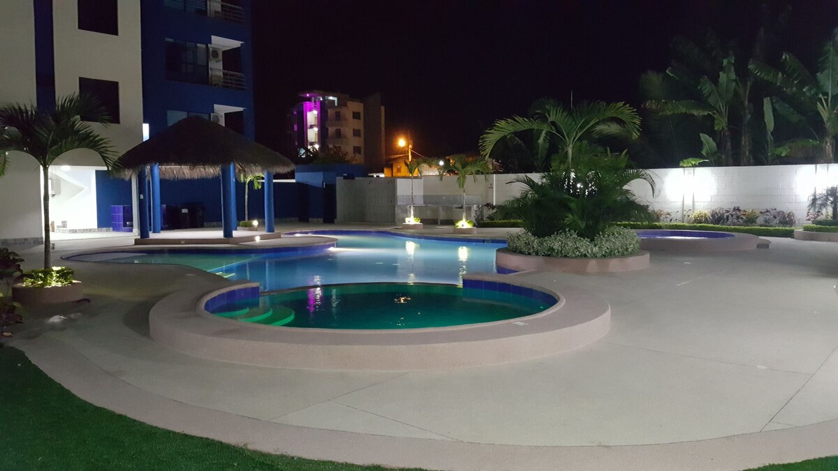 Departamento exclusivo de lujo, confortable para la familia, con guardianía 24/7. Cerca al Malecón de Tonsupa, con vista directa al mar y a la ciudad. Piscina, cancha de tenis, chozones, homework, carpa y sillas de playa.