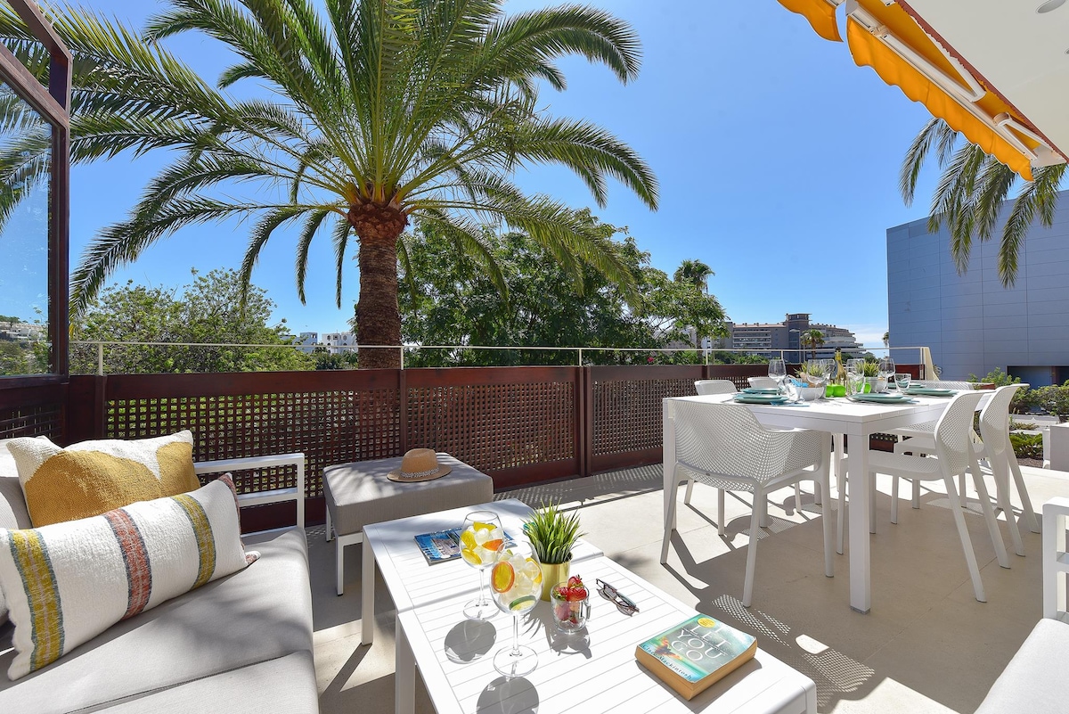 Luxus-Boutique-Casa „Ibiza-Stil-Dekor“-Eckbungalow im Herzen von Playa Del Ingles, nur wenige Gehminuten vom Yumbo-Center entfernt, in der Nähe von allem, sehr ruhige Gegend. Während der heißen Tage können die Gäste die Swimmingpools im Gemeinschaftsbereich genießen, wenn die Nacht kommt, kannst du den Whirlpool im Garten genießen. Deine Gastgeber und Familie werden ihr Bestes tun, um deinen Urlaub zu einer guten Erinnerung auf unserer fantastischen Insel zu machen. Wir sprechen und verstehen Englisch, Spanisch, Deutsch, Schwedisch, Norwegisch und Dänisch.