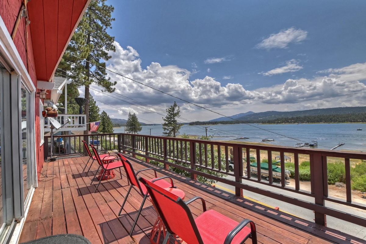 Lage! Auf einem Hügel mit unvergleichlichem Blick auf Lake Arrowhead, aber zentral gelegen, damit deine Gruppe einen 8-minütigen Spaziergang zum Lake & Lake Arrowhead Village genießen kann. Diese professionell eingerichtete 2700 Quadratfuß große, 3-stöckige Lodge bietet von den meisten Zimmern aus einen Blick auf den See, viel Platz für alle und eine RIESIGE Terrasse. Kuscheln Sie sich am Kamin an, entspannen Sie sich im Whirlpool, kochen Sie gemeinsam eine Mahlzeit in der voll ausgestatteten Küche, spielen Sie eine Partie Pool oder genießen Sie das Abendessen draußen, umgeben von Bäumen und atemberaubendem Seeblick.