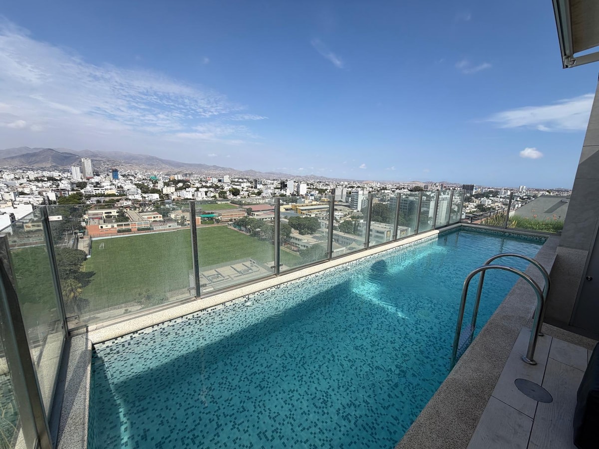 Lebe Lima aus der 20. Etage mit atemberaubender Aussicht! 🛏️ KINGSIZE-BETT 📺 65-Zoll-Fernseher 🛋️ Bequemes Sofa 🍳 Voll ausgestattete Küche 🏊 Pool, 🔥 Grill und 🍸 Lounge-Bar (je nach Verfügbarkeit) 🚗 Parkplatz für 8 US-Dollar/Nacht (je nach Verfügbarkeit) 🧳 Gepäck vor dem Check-in oder nach dem Check-out aufbewahren 📍 Erstklassige Lage zwischen Miraflores, San Isidro und Surquillo 🌟 Mit einer Bewertung von 4,96 und dem Superhost-Status biete ich dir einen komfortablen und sicheren Aufenthalt. 📅 Buche jetzt und genieße Lima von oben, mit Stil und Komfort!