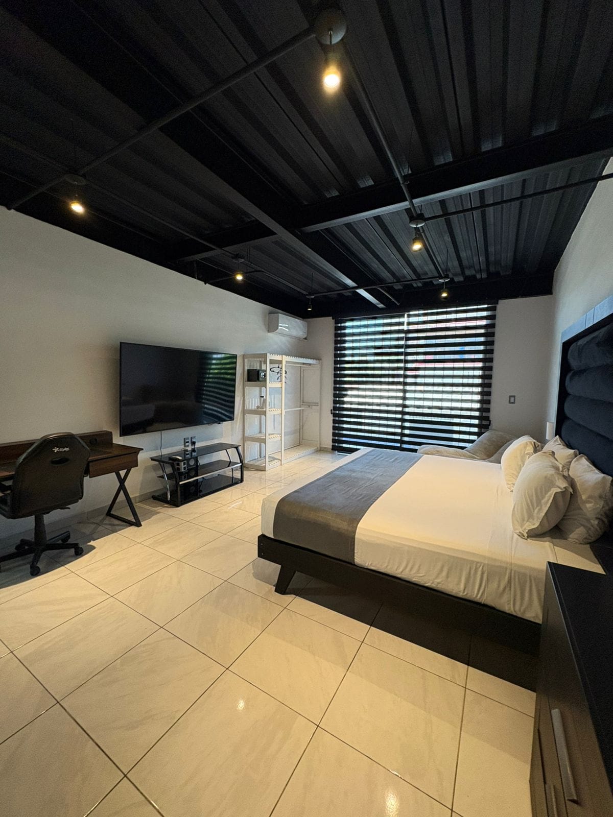 Bonito Flat estudio ubicado en la zona Este del centro de Oaxaca, en el centro pero fuera del 1er cuadro entre 15 y 17 min del zócalo y catedral (en la misma calle), es espacioso y perfecto para una pareja o familia pequeña. Ideal para estadías largas. Está perfectamente situado para aquellos que buscan un barrio tranquilo a una distancia decente del bullicio del centro. Está a un paso de cenadurias, tlayudas, tacos, mercados, supermercados y tiendas de conveniencia totalmente a pie.