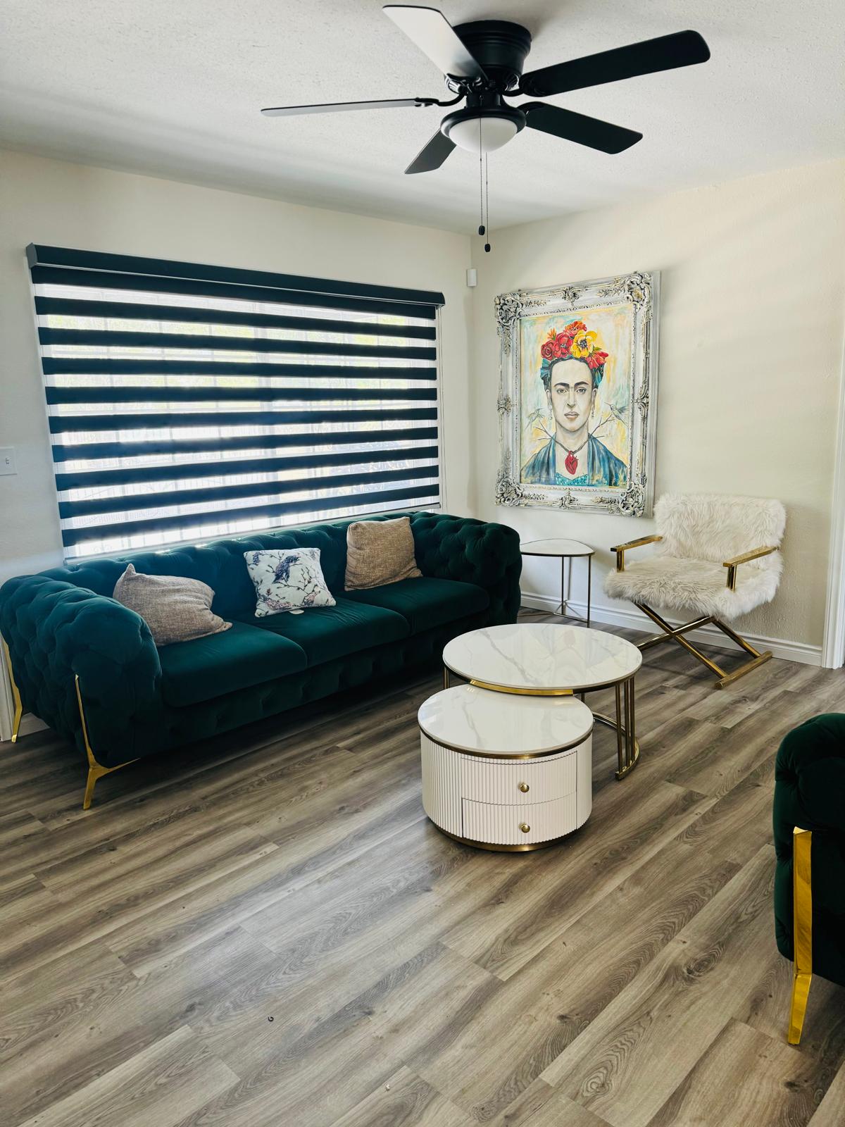 Halte es einfach, stilvoll und komfortabel! Brandneuer 55-Zoll-Bildschirm, High-Speed-Internet und zentral gelegen. Familien- und haustierfreundlich. * HALBPRIVATE Seite des Hauses, 2 Heizungen/Klimaanlagen, PRIVATES Badezimmer, Wohnzimmer und private KCHN in einem Gemeinschaftseigentum. Kostenloser Kaffee, Kochutensilien, Parkplatz mit Tor auf der Vorderseite der Terrasse. Verwöhne dich im schönen, begehbaren, Marmol-ähnlichen Badezimmer, mit modernem Duschkopf und Bluetooth. Erlebe „Das LA-Leben“ – Foodtrucks, Streetfood & Snacks auf den Straßen oder 2–5 Minuten zu Fuß