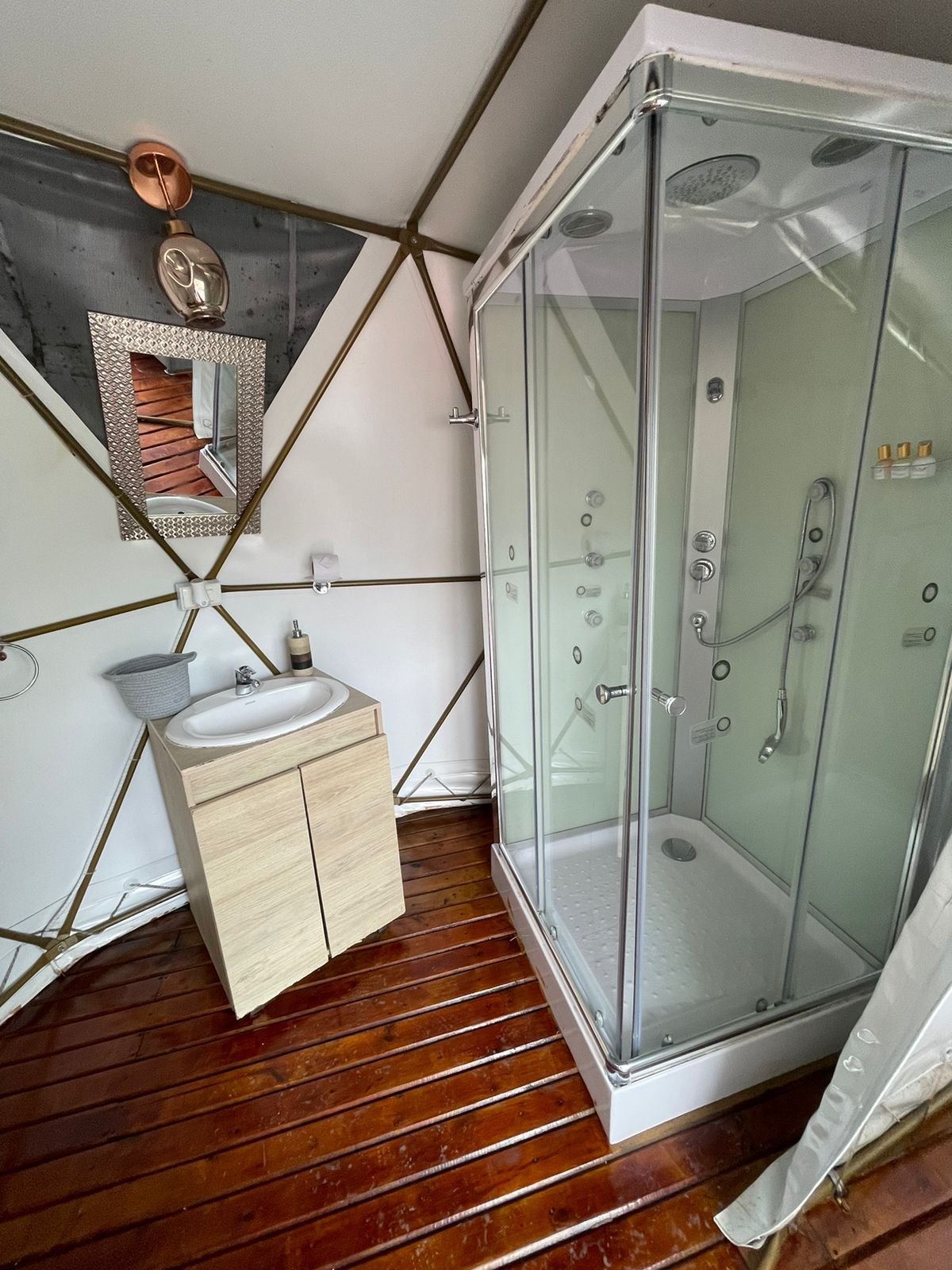 Escápate a este exclusivo glamping para 4 personas, ideal para desconectarse en medio de la naturaleza, con una vista espectacular a los montañas que puedes apreciar desde la maya catamarán. Tu estadía incluye: Jacuzzi privado (climatizado) y sin límite de tiempo Copas de sangría Kit de fogata Desayuno Ideal para escapadas familiares o de relajación. Vive la magia del glamping con todas las comodidades y disfruta de una experiencia inolvidable bajo las estrellas.