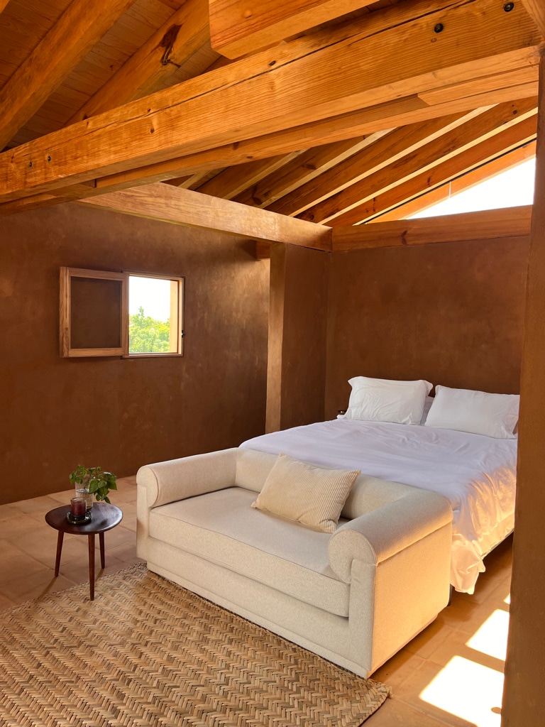 Lofthaus auf zwei Ebenen und zwei Terrassen. Das ist Teil des La Calera Loft-Sets, von einer alten Limettenfabrik, jetzt in Gebrauch. 10 Minuten (2 km9 vom Zócalo der Stadt entfernt) Im Erdgeschoss befindet sich eine Küche und ein Badezimmer, sowie eine große überdachte Terrasse mit Esstisch und Wohnzimmer. Im Obergeschoss befinden sich der Kleiderschrank, das Kingsize-Bett und eine kleine Terrasse mit Blick auf die Bäume und das zentrale Land von La Calera. 44 m ² Innenbereich + 67 m ² Außenbereich.