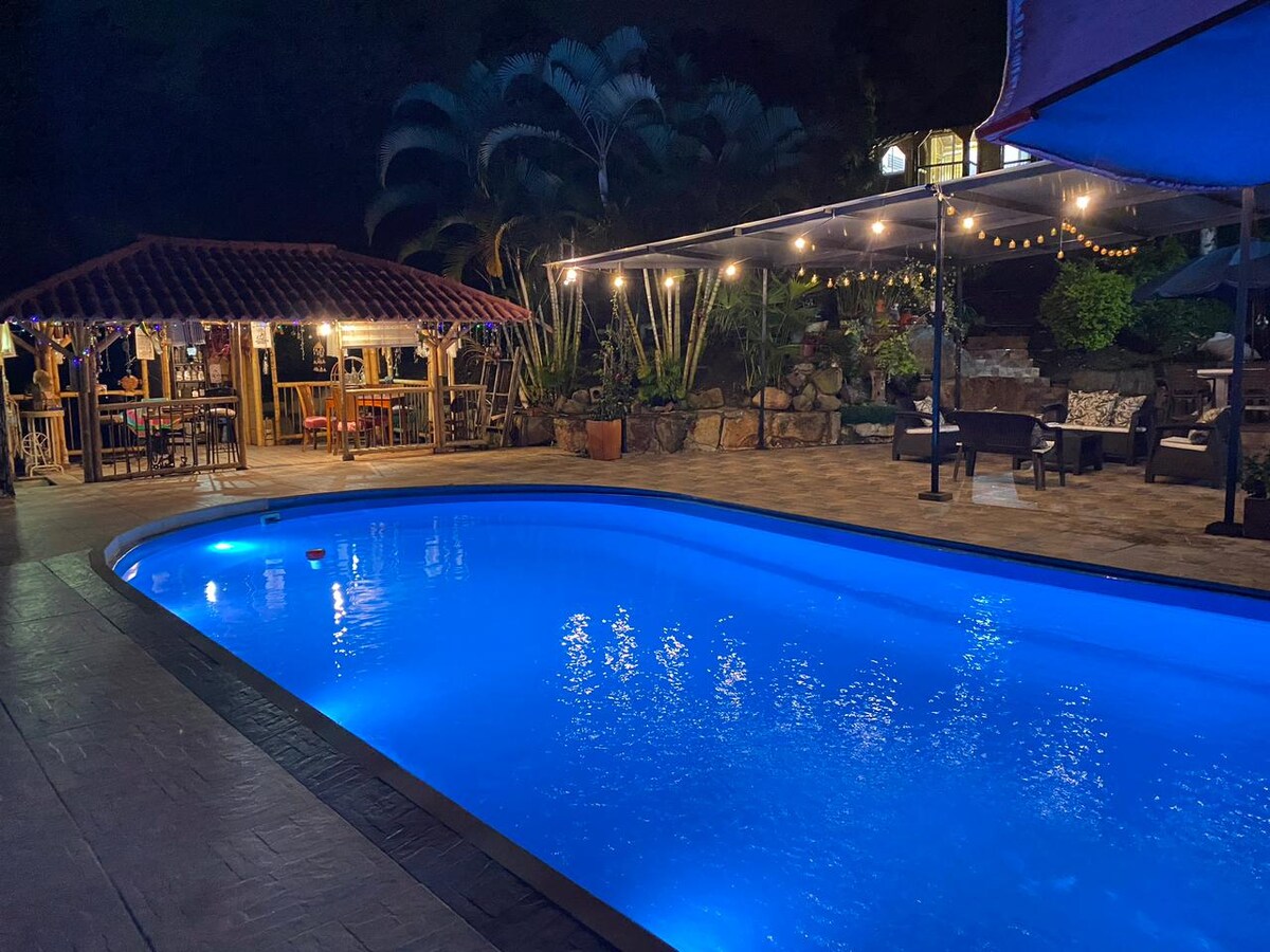 ▶️Privathaus, familiäre Atmosphäre, privater Pool 1,20 Meter tief, 3x4 Meter, Kaltwasser-Whirlpools. ▶️Mindestens 4 bis 10 Personen, um zu beherbergen. ▶️Drei Zimmer, eigenes Bad, TV, Kühlschrank. ▶️Tiergesang, wie Hühner, Vögel. Kiosk mit Hängematten, Frosch, Brettspielen. Abwechslungsreiches ▶️Klima. Bringe Mückenschutzmittel mit. Der Zugang zum Auto wird mit den Gastgeber:innen geteilt. ▶️Es ist 200 Meter von der Hauptstraße entfernt, es kann Lärm von Motorrädern und Autos geben. Von den Eigentümern▶️ bedient.