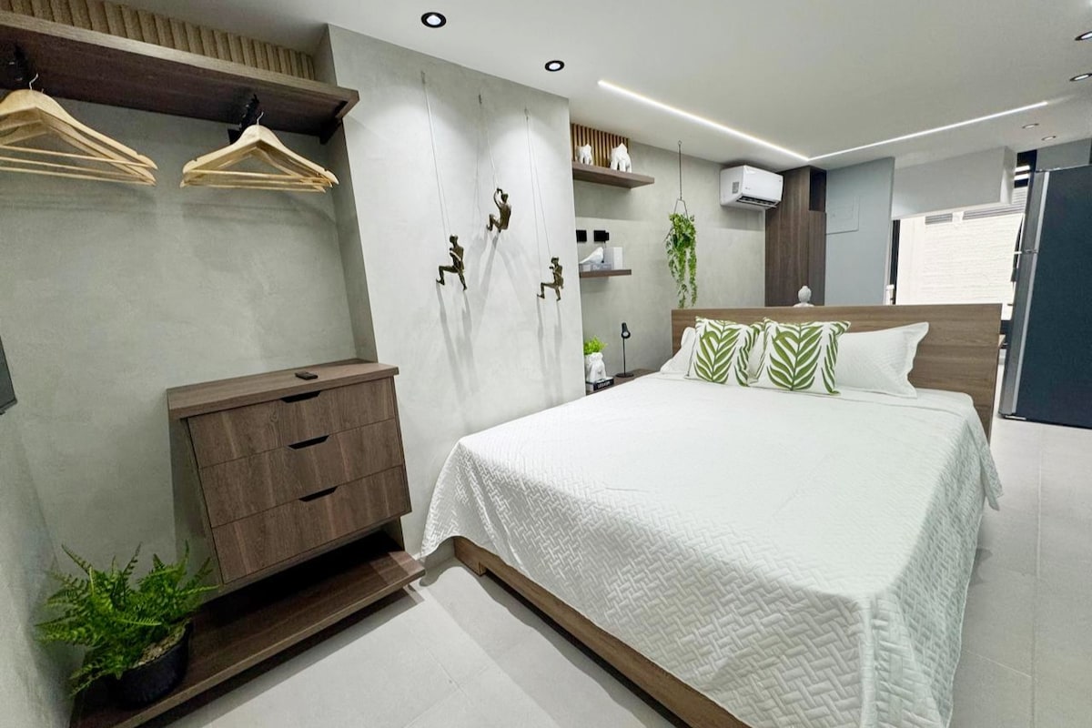 Diese wunderschön eingerichtete und moderne 2-Zimmer-Wohnung mit 3 Badezimmern liegt im ruhigen Santa Monica-Laureles und ist ideal für wiederkehrende Reisende und diejenigen, die einen gemütlichen Ausgangspunkt suchen. Genieße den privaten Zugang zum Aufzug, geräumige Schränke und eine beruhigende Farbpalette, die eine entspannende Atmosphäre schafft. Die Unterkunft ist komplett mit Klimaanlage für Komfort ausgestattet. Entworfen für digitale Nomaden und Familien, bietet sie sowohl Stil als auch Gelassenheit und ist das perfekte Zuhause, um sich im pulsierenden Medellín zu entspannen.