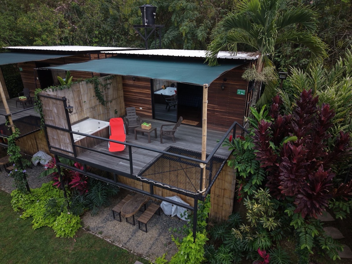 El Bosque Cabin – Entfliehe in einen versteckten Zufluchtsort zwischen einheimischen Bäumen, wo sich das Rauschen des Waldes und moderner Komfort treffen. Genieße eine Hütte mit einem privaten Whirlpool, einem Katamaran-Netz, einem Kingsize-Bett, einem Spa-Badezimmer und einer Terrasse, die zur Landschaft hin offen ist. Ideal für Paare, die Privatsphäre, Verbindung mit der Natur und Nächte unter den warmen Lichtern des Waldes suchen
