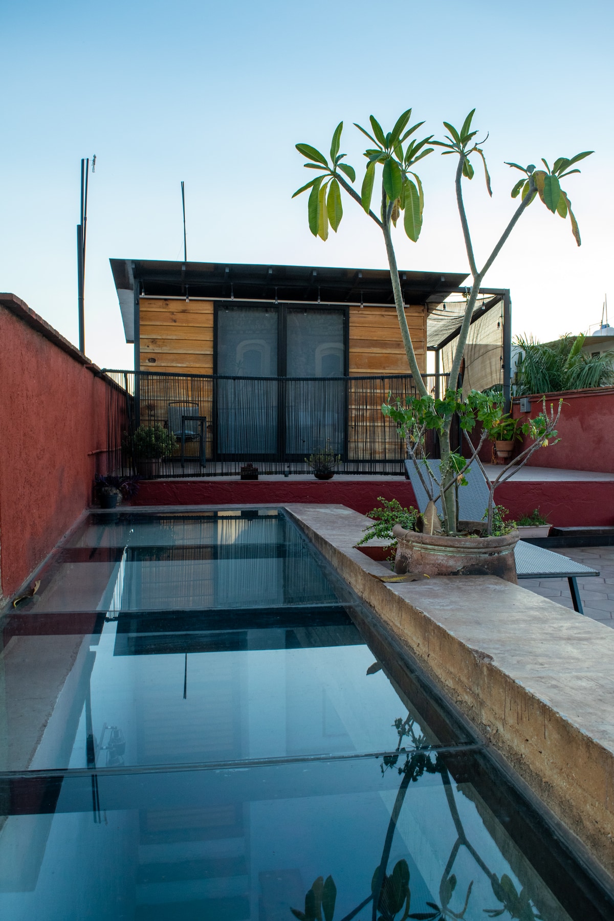 Minimalistisches Juwel voller Licht, das sich zu Gärten mit hochragenden Bäumen und blühenden Sukkulenten, mehreren Terrassen und einem 22 Meter langen beheizten Sportpool öffnet. Wir sind Teil einer Zapotec-Stadt mit nahegelegenen Restaurants und einem einfachen Transport in die Stadt Oaxaca (25 Minuten entfernt). Wir bieten Touren zu Handwerksdörfern und archäologischen Stätten an. Für den Wanderer gibt es lokale Bergpfade. Und die Stadt Tule ist 2,5 Meilen entfernt mit ihrer majestätischen 2.000 Jahre alten Zypresse – ein sehenswerter Anblick!