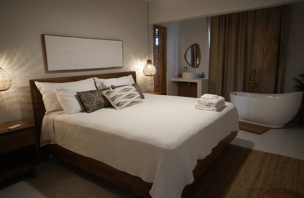 Das Rosalina Ocean Park ist ein helles, modernes Boutique-Hotel im Herzen von Ocean Park, San Juan. Mit 19 einzigartigen Einheiten, zwei Gemeinschaftspools und einem ruhigen Innenhof ist es der perfekte Ort, um sich nach einem Tag voller Sonne und Kultur zu entspannen. Nur wenige Minuten vom Ocean Park Beach, Calle Loiza und Condado entfernt. Ganz gleich, ob du hier bist, um dich zu entspannen, die Gegend zu erkunden oder beides, du wirst dich wie zuhause fühlen. 🛎️ Bitte lies dir vor der Buchung die vollständige Beschreibung durch.