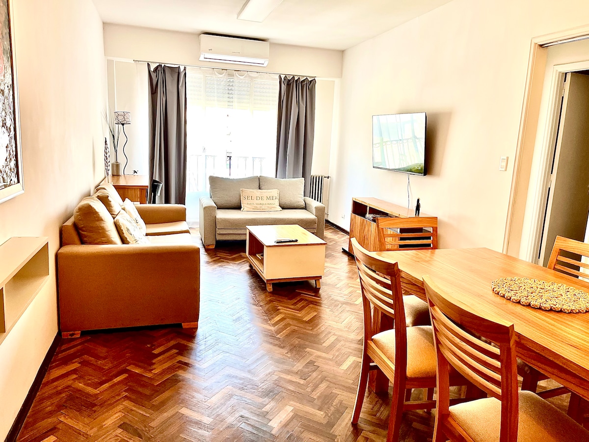 „Komfortable Wohnung im Herzen von Buenos Aires“ Dieses 96 m² große Apartment liegt im Stadtzentrum und ist perfekt für Gruppen, Familien oder Geschäftsreisen. Nur wenige Minuten von Obelisco, Puerto Madero, der Innenstadt, beiden Flughäfen und dem Hafen entfernt- du hast alles in Reichweite. Genieße eine touristenfreundliche Gegend voller Restaurants, Theater und Büros. Mit 2 Schlafzimmern, 3 Badezimmern und einem großen Wohn-Esszimmer ist es der ideale Ort, um Buenos Aires zu erkunden oder bequem zu arbeiten.