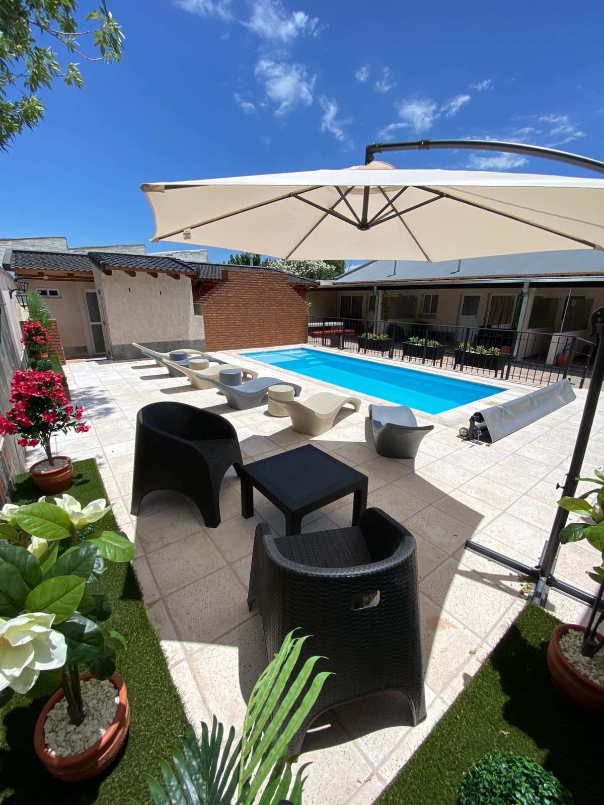 🏊🏼♀ Pool, Frühstück, tägliche Reinigung, Grill, NUR vom 25. Dezember bis April. ✅ High-Speed-WLAN 📍 Es befindet sich im MIKROZENTRUM von San Rafael, 20 m von der Avenida San Martin, 50 m von der Plaza San Martin (historisches Zentrum) und 200 m von der Avenida Hipólito Yrigoyen, der Hauptverkehrsader der Stadt, 🚌 600 m vom Terminal und ✈ 5 km vom Flughafen entfernt. ☕ Orte umgeben von Cafés, Restaurants, Läden, Kino usw.