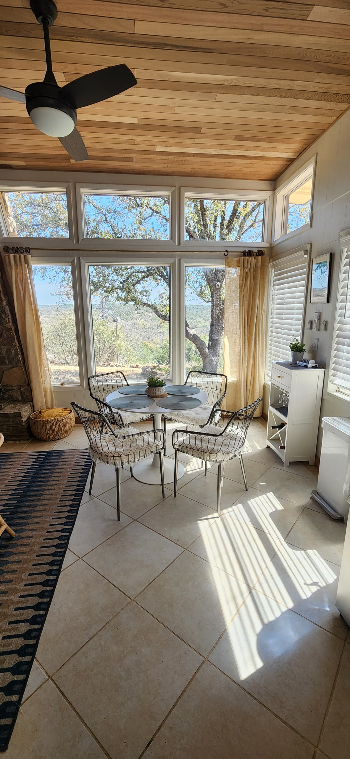 Treten Sie ein in eine der süßesten, gemütlichsten, lauschigsten kleinen Hütten, die Sie finden konnten! Sobald du durch die Tür gehst, wirst du in einem Gefühl von Zuhause eingehüllt. Der Raum mag klein sein, aber Fenster an jeder Wand, die Deckenspitze und die entspannende minzige und graue Farbgebung inspirieren das Gefühl der Offenheit! Perfekt gelegen mitten im verführerischen Texas Hill Country, bist du bereit für jedes Abenteuer, wenn du die Hütte entdeckst, die der süßeste Ort auf deinen Reisen werden wird!