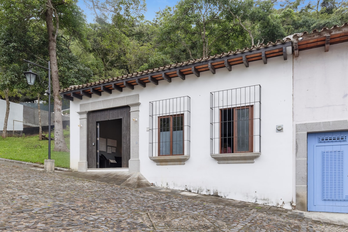 Wunderbar! ENTFLIEHE DEM ALLTAG & SEI IN SICHERHEIT: Süße Villa mit einem Queensize-Schlafzimmer, offen zu einem stilvollen Wohnzimmer, zur Küche und zum Esszimmer und zur vorderen Sitzveranda/Erstaunliche Architektur. Nachhaltige Avocadofarm mit 6000 Bäumen auf 150 Hektar – 5 km von Antigua (den Hügel hinauf). Netzunabhängig. Bestes WLAN in Antigua (Punkt zu Punkt). Die Architektur ist ein einzigartiges, von den Maya und Spaniern inspiriertes Erlebnis. Viele private Wanderwege. Ein guatemaltekisches Gourmet-Frühstück ist inbegriffen und tägliche Fahrten nach Antigua und ins nahegelegene Dorf.