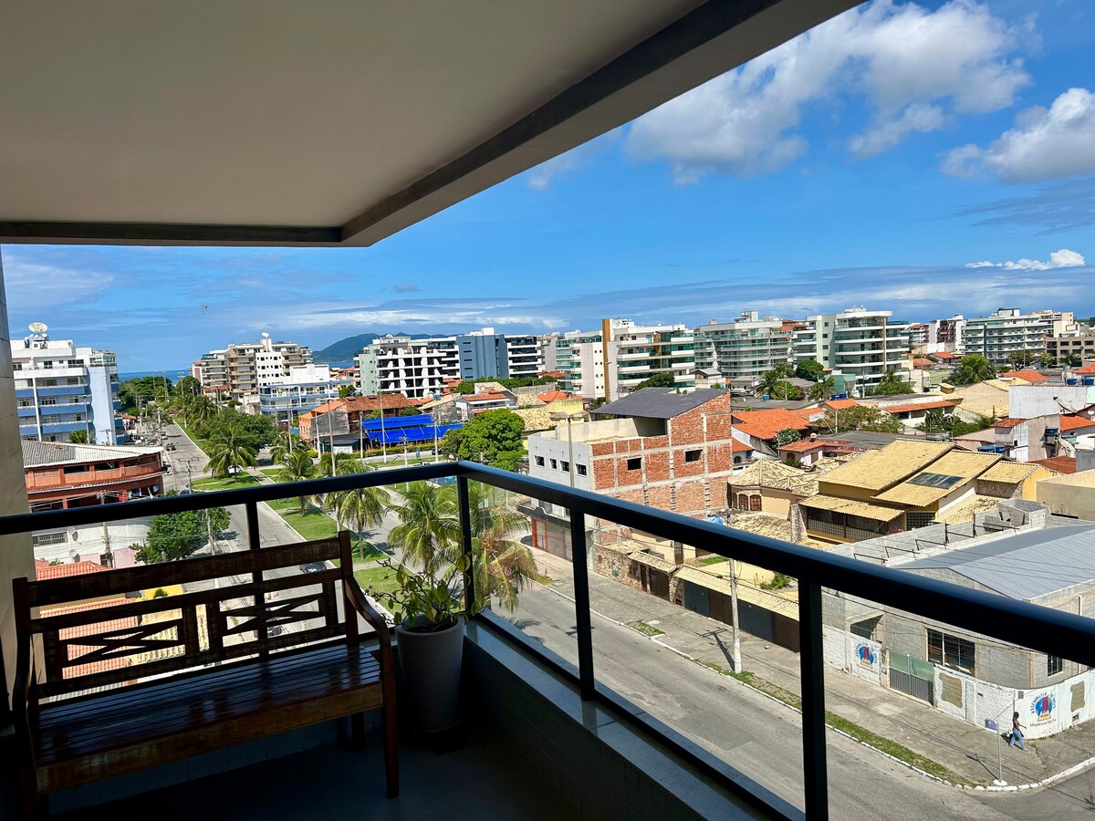 Apartamento exclusivo para o Airbnb no bairro Braga Cabo Frio-Amplo e confortável, o apartamento possui 2 quartos, um quarto suíte com cama de casal, duas camas de solteiro embutidas ar-condicionado, e um quarto com cama de casal com ar condicionado, ambos com varanda. A sala é arejada, com Smart TV, sofá retrátil e mesa para 6 pessoas. Cozinha completa com forno, fogão, geladeira, cafeteira e utensílios. Banheiro completo, área de serviço com lava e seca, Wi-Fi rápido e estacionamento