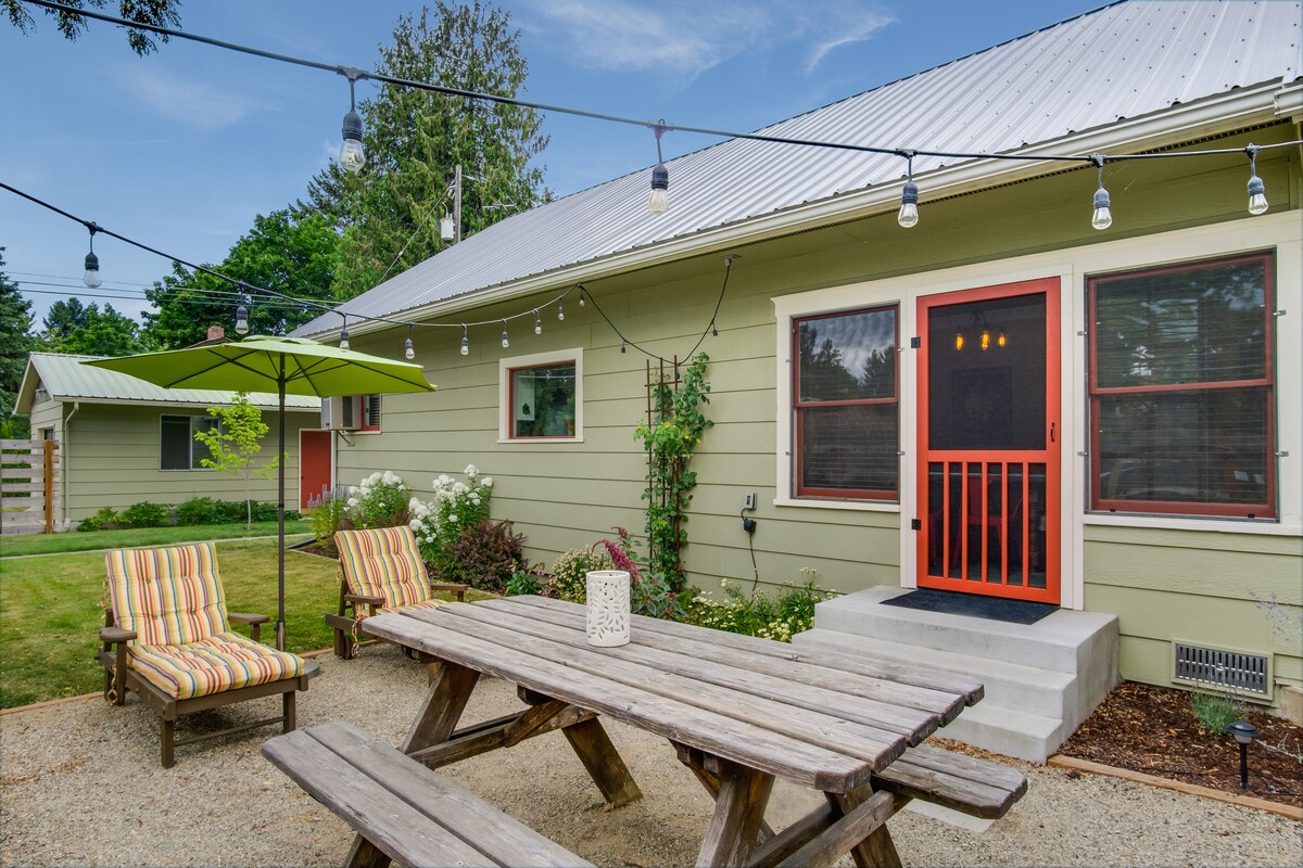 Dieses charmante Haus ist sauber und zentral gelegen; 1/2 Meile zum City Beach, 1 Block zum Evans Bros Coffee & Dining, 2 Blocks zum Sandpoint Zentrum, 3,5 Meilen zum Fuß von Schweitzer. Wir stellen 4 Fahrräder zur Verfügung (Mai–Oktober). Wir bieten Bade- und Bettwäsche aus 100 % Baumwolle, Strandtücher, eine voll ausgestattete Küche, einen Smart-TV, DVDs, Bücher, Spiele und Bastelarbeiten. Der eingezäunte und angelegte Garten verfügt über eine private, überdachte Veranda, eine Feuerstelle und einen Propangrill. Wir erlauben Hunde (muss angegeben werden) und reinigen gründlich zwischen jedem Gast.