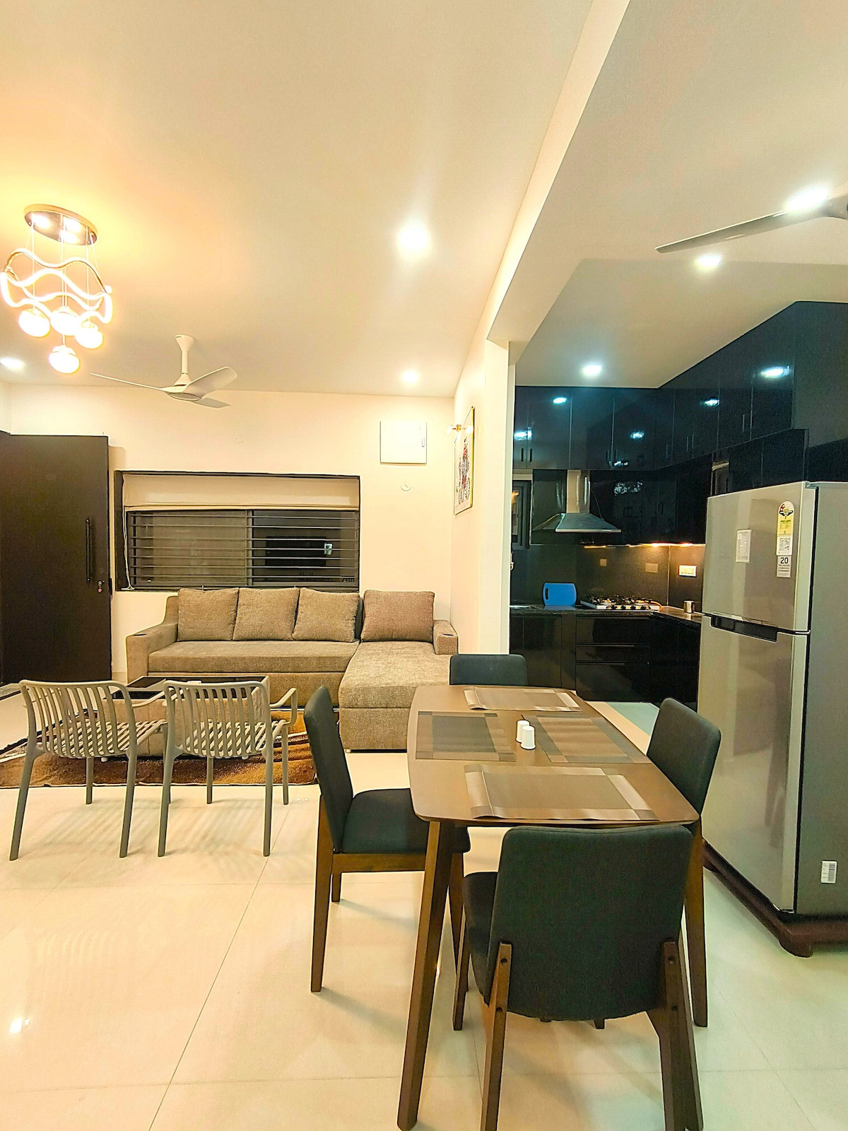 Genieße einen erstklassigen Aufenthalt in dieser geräumigen und elegant eingerichteten 2BHK-Wohnung in der ruhigen Umgebung von Kondapur, in der Nähe des Botanischen Gartens. Mit modernen Innenräumen, großzügigen Wohnräumen und durchdacht ausgewählten Möbeln ist dieses Haus ideal für Komfort und Stil. Die ruhige Lage bietet eine erfrischende Flucht vor Verkehr und Lärm, während sichere Parkplätze und Sicherheit rund um die Uhr zu deiner Sicherheit beitragen. Perfekt für Familien und Berufstätige, die ein entspanntes urbanes Leben suchen.