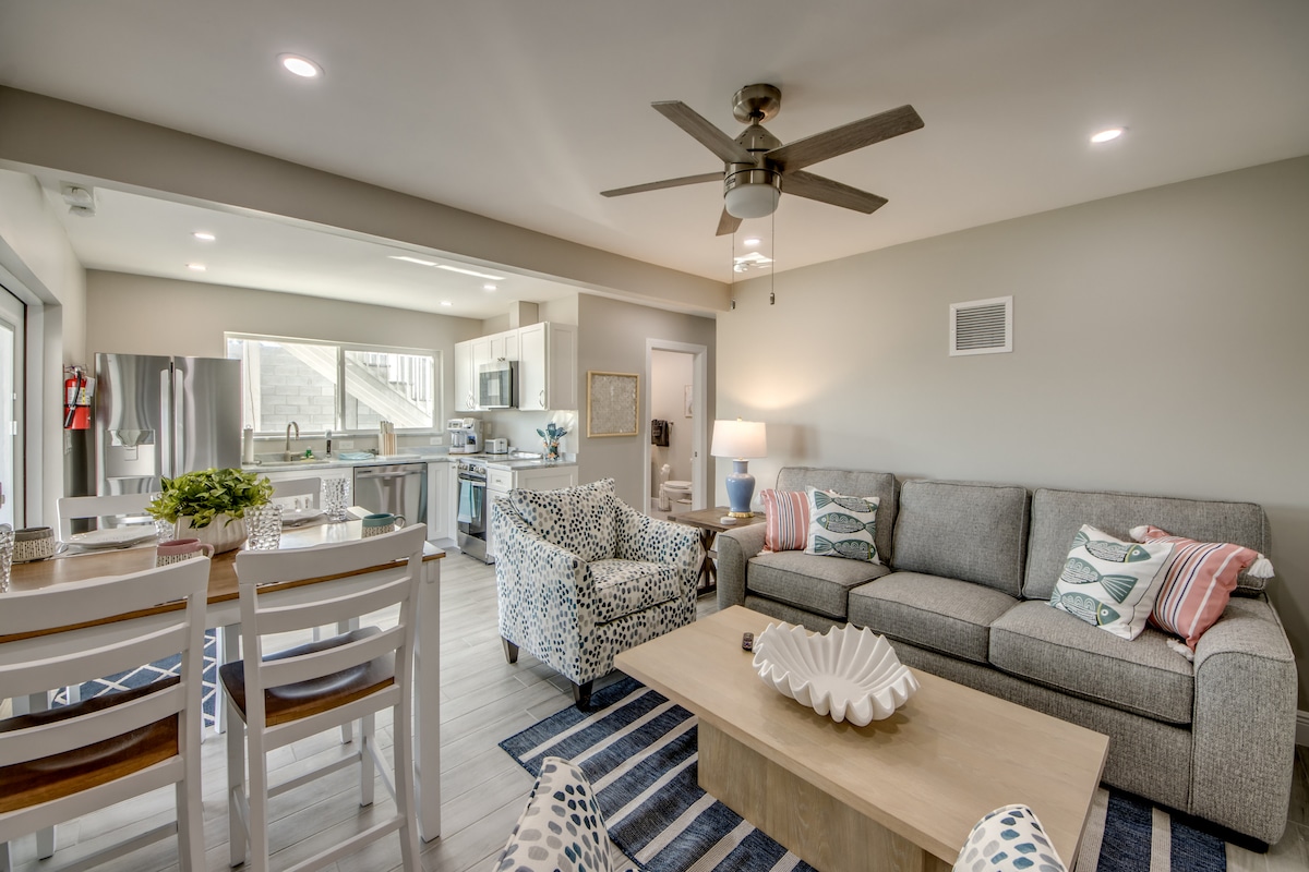 Direkt am Strand ohne Treppen zu steigen! Genieße das Wohnen im Erdgeschoss von seiner besten Seite in diesem entspannenden Küstenrefugium, nur wenige Schritte vom Strand entfernt. Diese große 1BR-Eigentumswohnung bietet Platz für 5 Personen und wurde komplett renoviert, um eine individuelle Küche und ein Badezimmer mit großer begehbarer Dusche zu bieten. Erstklassige Küstenmöbel in jedem Zimmer. Das geräumige Hauptschlafzimmer bietet ein Kingsize-Bett von Stearns and Foster und einen großen Schreibtisch, wenn du einen ruhigen Raum zum Arbeiten benötigst. Das WLAN wurde vollständig aktualisiert, um Streaming und Video zum Kinderspiel zu machen!