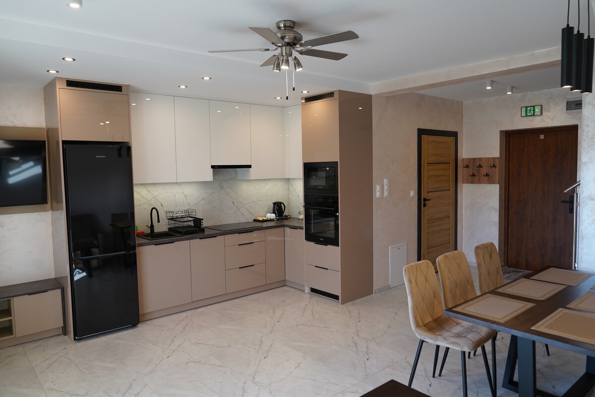 Die Wohnung befindet sich im Erdgeschoss des Gebäudes mit direktem Zugang vom Parkplatz. In der Nähe befinden sich das Freilichtmuseum und die Burg Sanok (Beksiński, Ikonen), die Umgebung besteht aus malerischen Wäldern und charmanten Teichen. Das mit roten Akzenten stilisierte Interieur zeichnet sich durch eine hohe Verarbeitungsqualität und Liebe zum Detail aus. Die komplette Ausstattung (Küche und Bad), eine große Eckcouch und ein Bett machen das Apartment ideal für ein Paar oder eine Familie. Zusatzbetten ermöglichen den Aufenthalt weiterer Personen.
