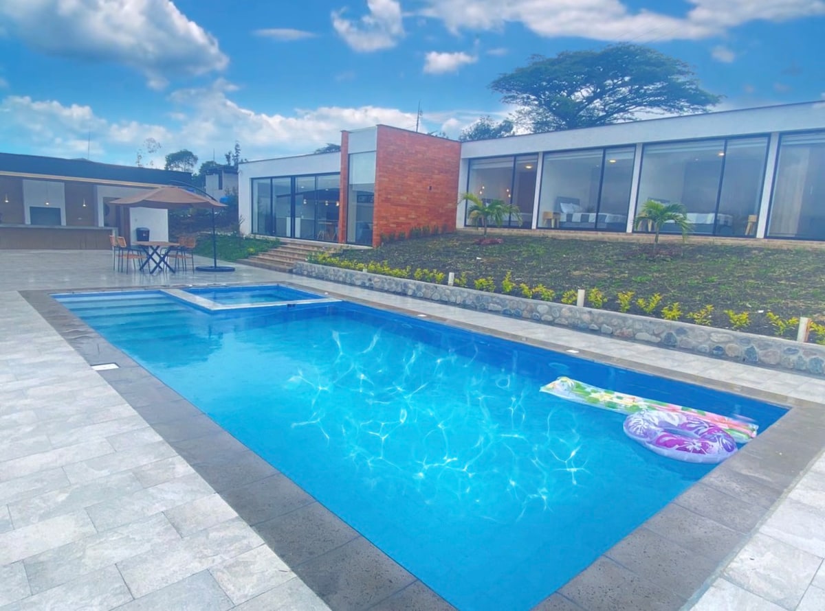 Modern smart villa in Yunguilla. 4 BR, 3 BA, fits 10. Private pool, jacuzzi & BBQ area. High-tech features, exterior security, total privacy. Serene countryside location, ideal for families & groups. Your perfect getaway!